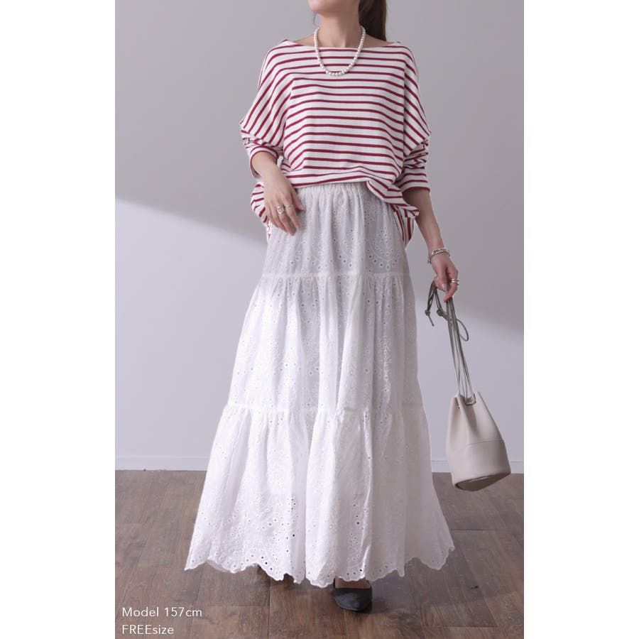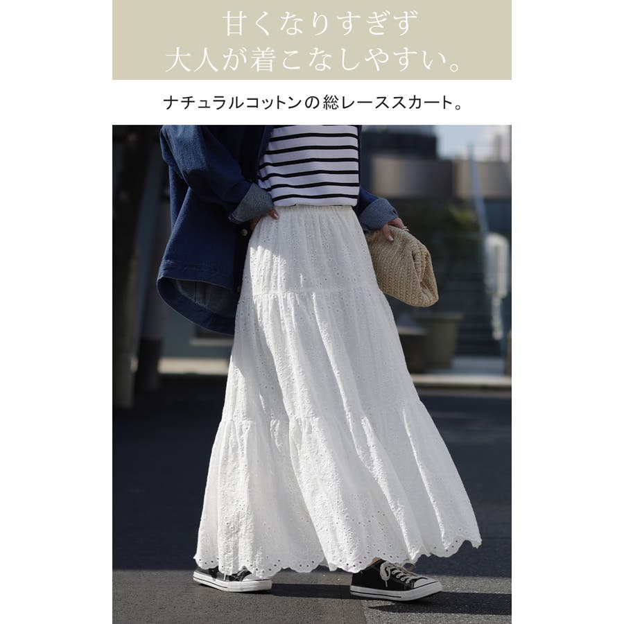 綿素材の総レースティアードスカート。