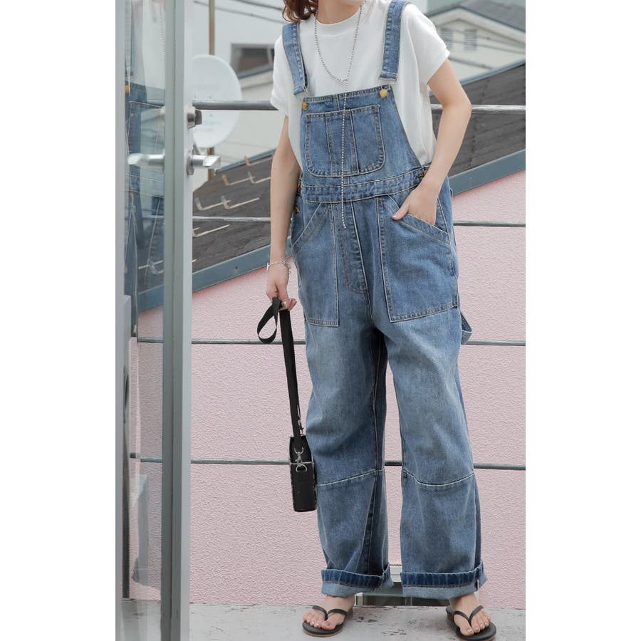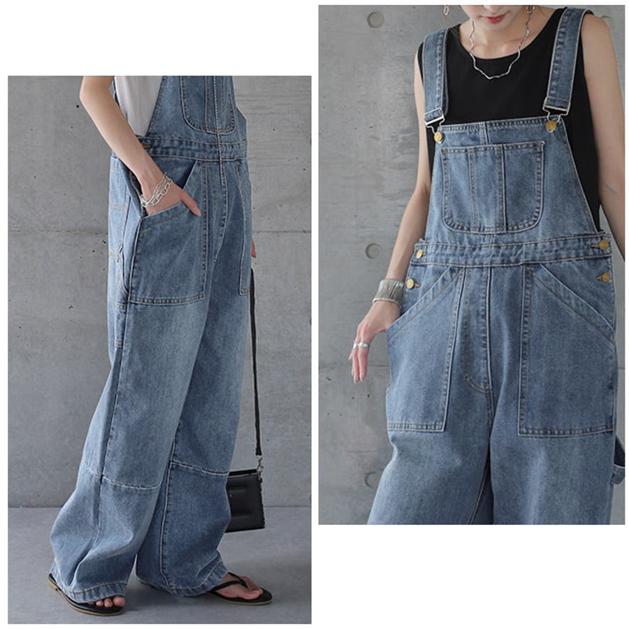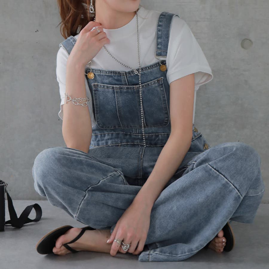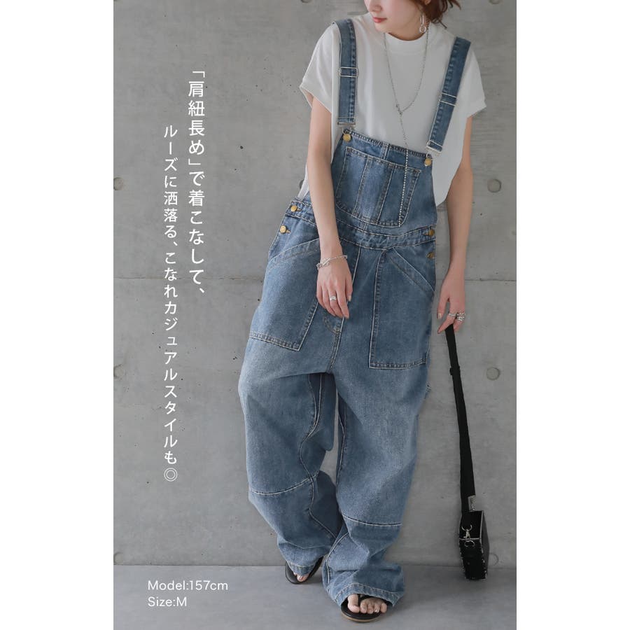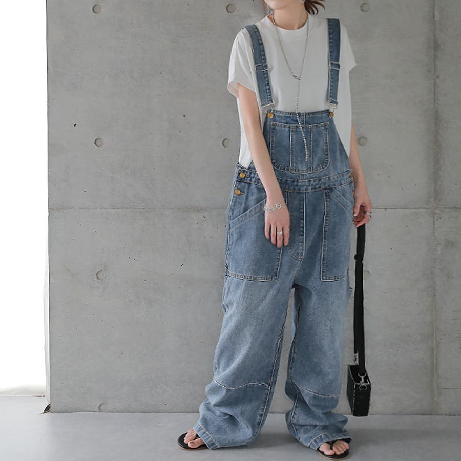 ゆるっとしたワイドシルエットのデニムサロペット。