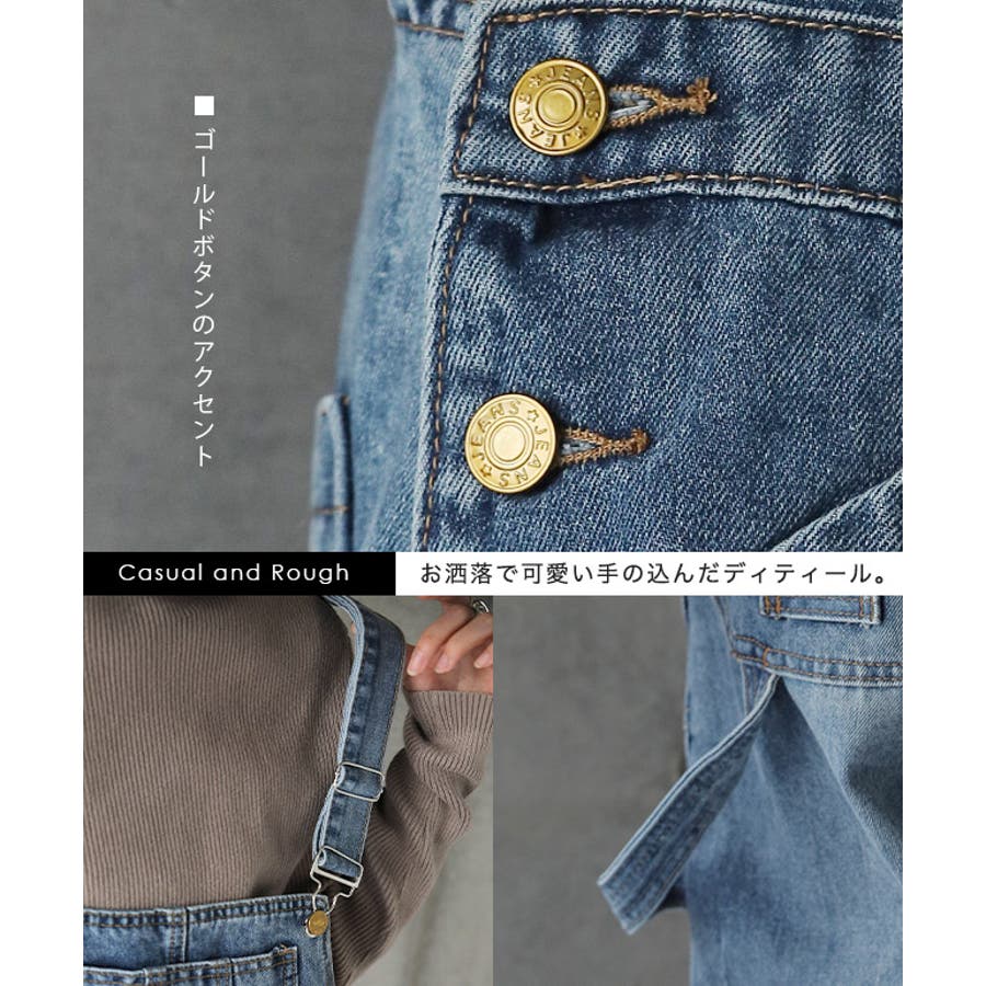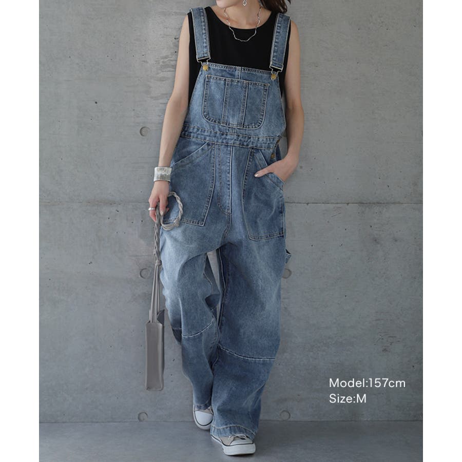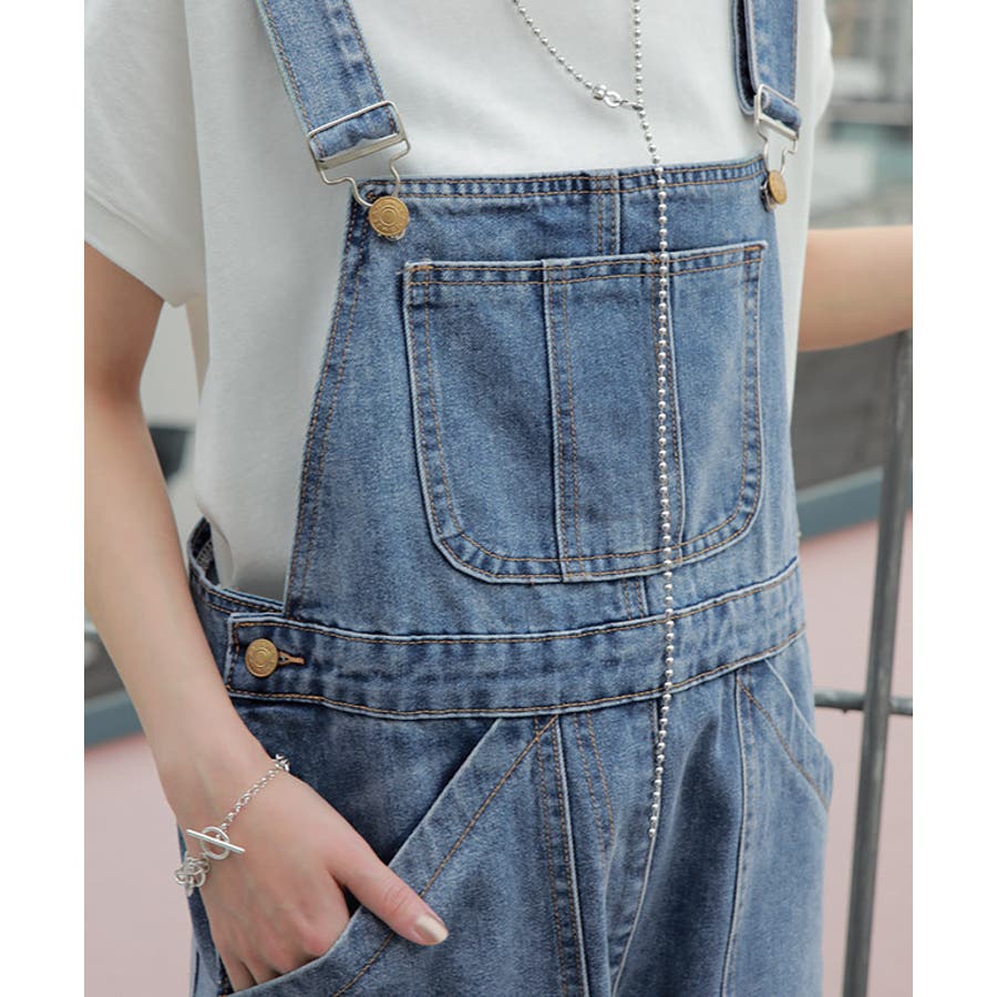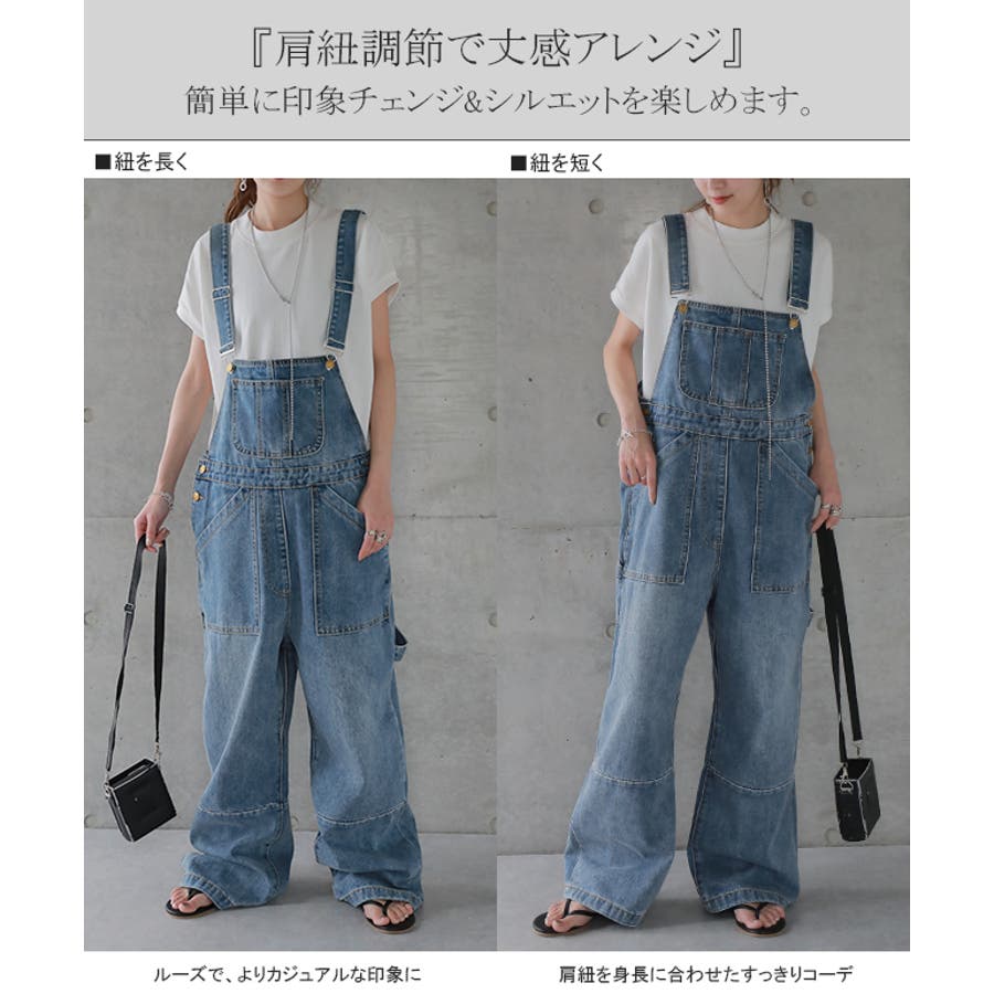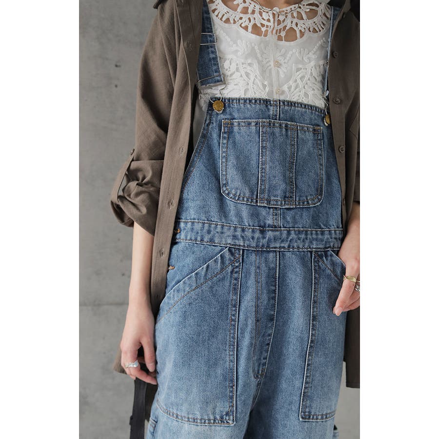 ゆるっとしたワイドシルエットのデニムサロペット。