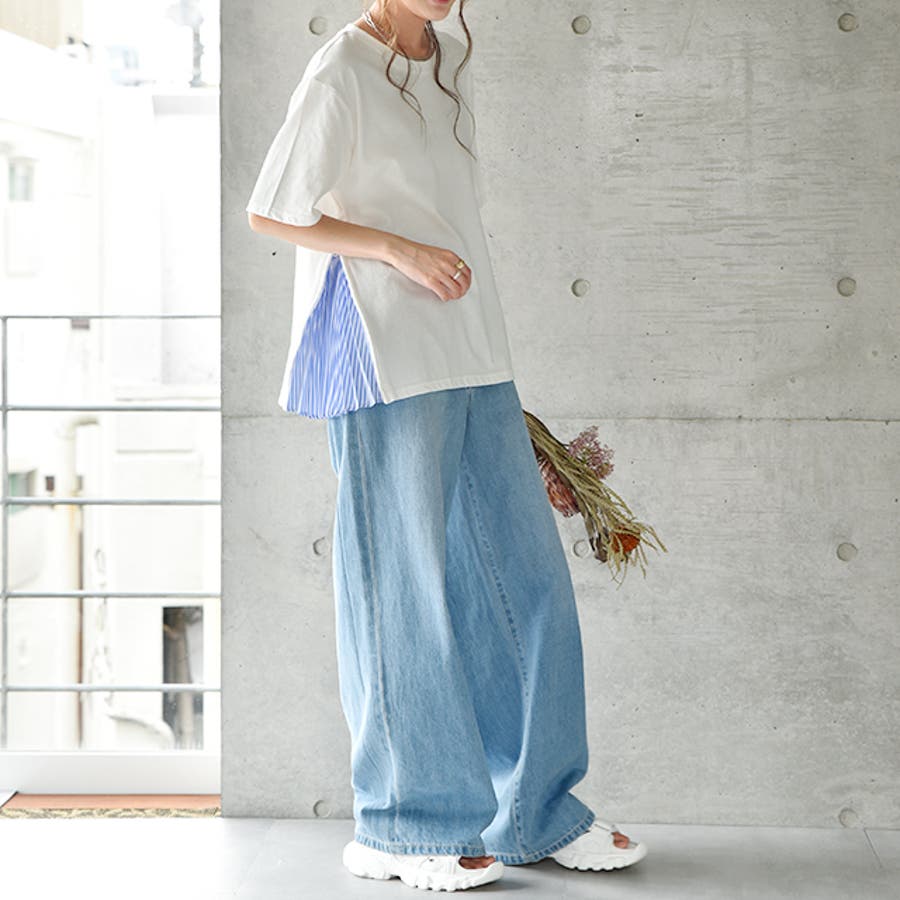 取り外し可能なベルトと落ち感のあるシルエットでさりげない体型カバーが叶います。