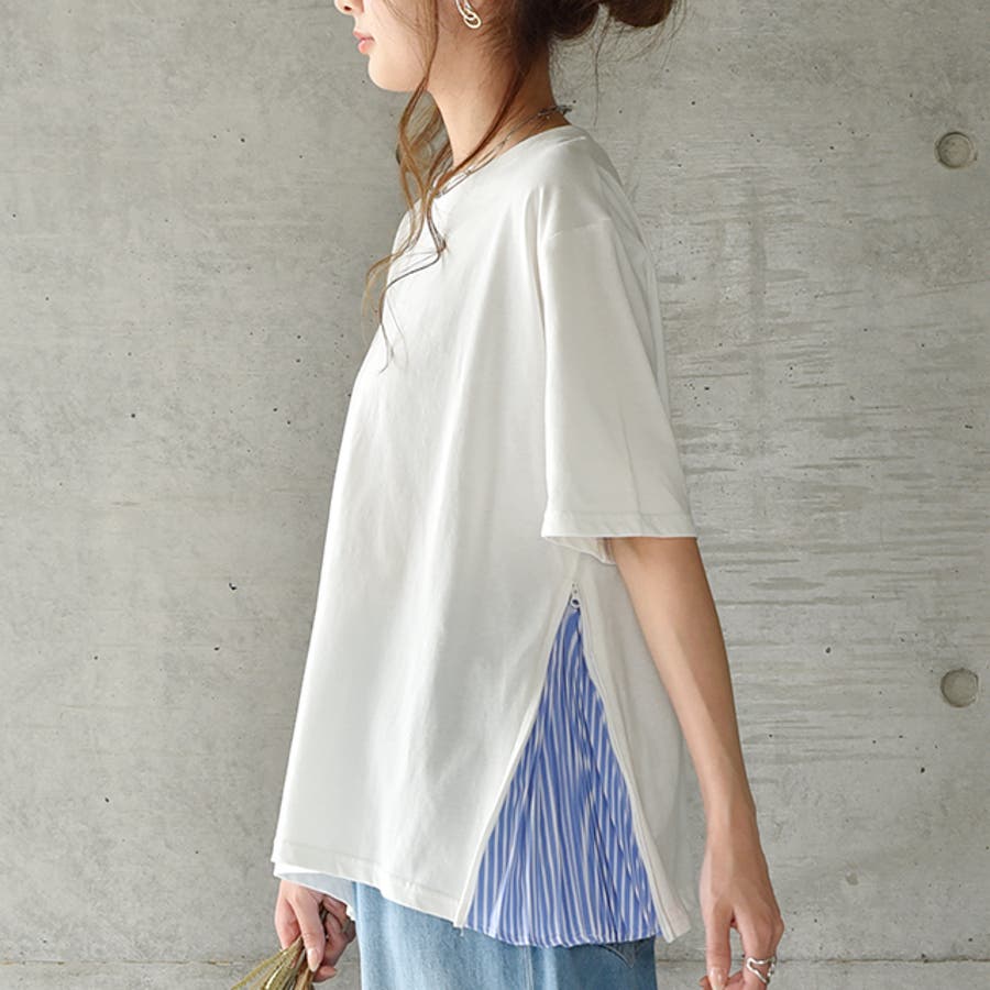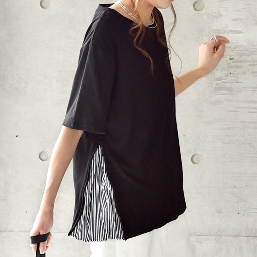 トップス Tシャツ レディース カットソー チュニック 半袖 ストライプ プリ