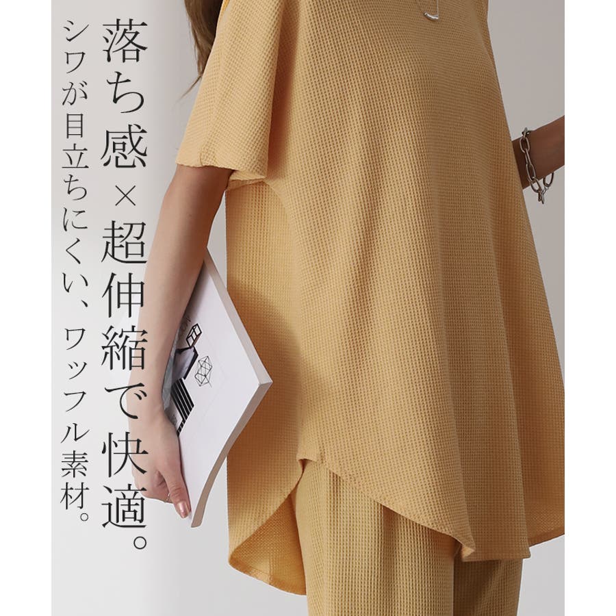 ワッフル Vネック ワンマイルウェア プルオーバー 大人 チュニック お尻が隠れる ゆる ゆったり 涼感 体型カバー 楽 らくちんらく 楽ちん リラックス ビッグ ビック ビッグシルエット オーバーサイズ お家で過ごそう お家時間 ワイドパンツ ワイド お泊りニュアンスカラー サフランイエロー イエロー アイスココア ブラウン スキンベージュ ベージュ ブラック ブルーシェル ブルーアイスグレー グレー モーブピンク ピンク チャコール チャコールグレー 黄 黄色 茶 茶色 肌色 黒 黒色 青 青色 灰色 桃 桃色春夏 春 夏 20代 30代 40代 50代 おしゃれ お洒落 オシャレ かわいい 可愛い カワイイ フリーサイズ ML XL 2L S LL HUG.U HUGU ハグユー はぐゆー