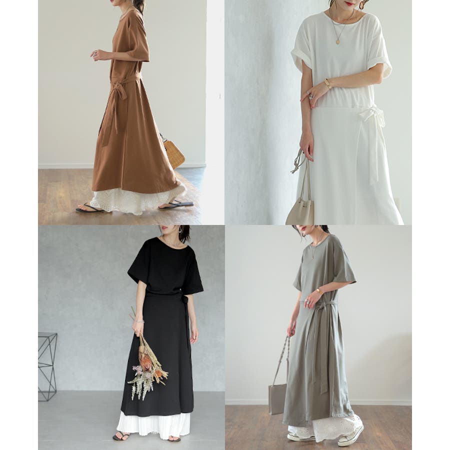 ドロップショルダー Uネック リボンウエスト りぼん Aラインワンピース Aラインワンピ フレアワンピース フレアワンピ 巻きスカート巻きスカート風ワンピース ラップスカート風ワンピース レイヤードワンピース レイヤードワンピ ブラック サファリグレー グレーオートミール ライトグレー ホワイト ブルー アーモンド ブラウン キャメル 黒 黒色 灰色 白 白色 青 青色 茶 茶色フリーサイズ M L XL XXL 2L 3L 20代 30代 40代 50代 おしゃれ お洒落 オシャレ かわいい 可愛い カワイイフリーサイズ M L XL XXL 2L 3L HUG.U HUGU ハグユー はぐゆー