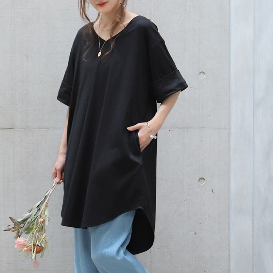 トップス Tシャツ カットソー チュニック レディース 2way 半袖 丸首