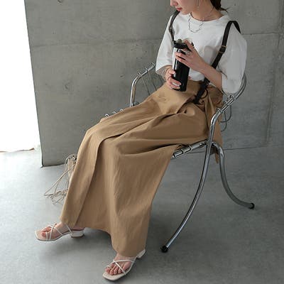 サスペンダー付きのアシンメトリーラップスカートです。
