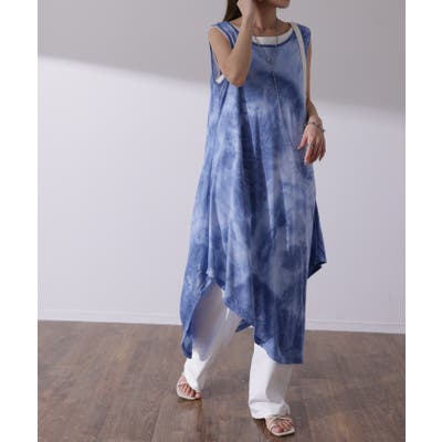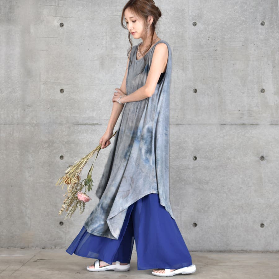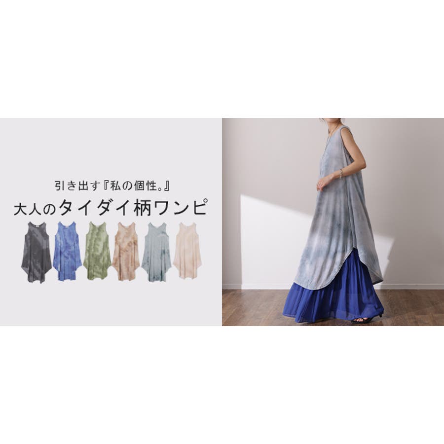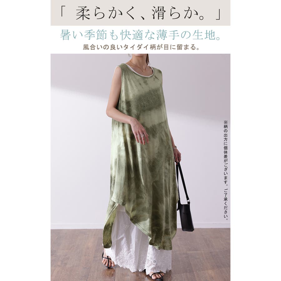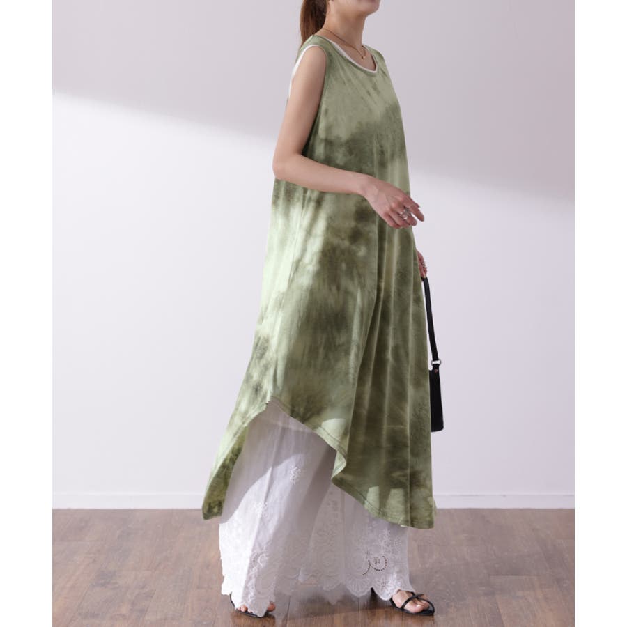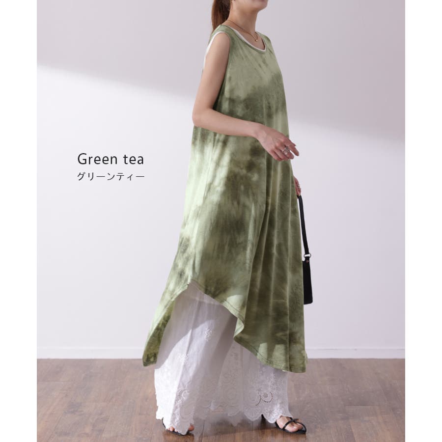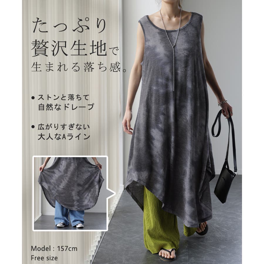 ワンピース レディース 秋 タイダイ柄 ロングワンピース ノースリーブ ゆった