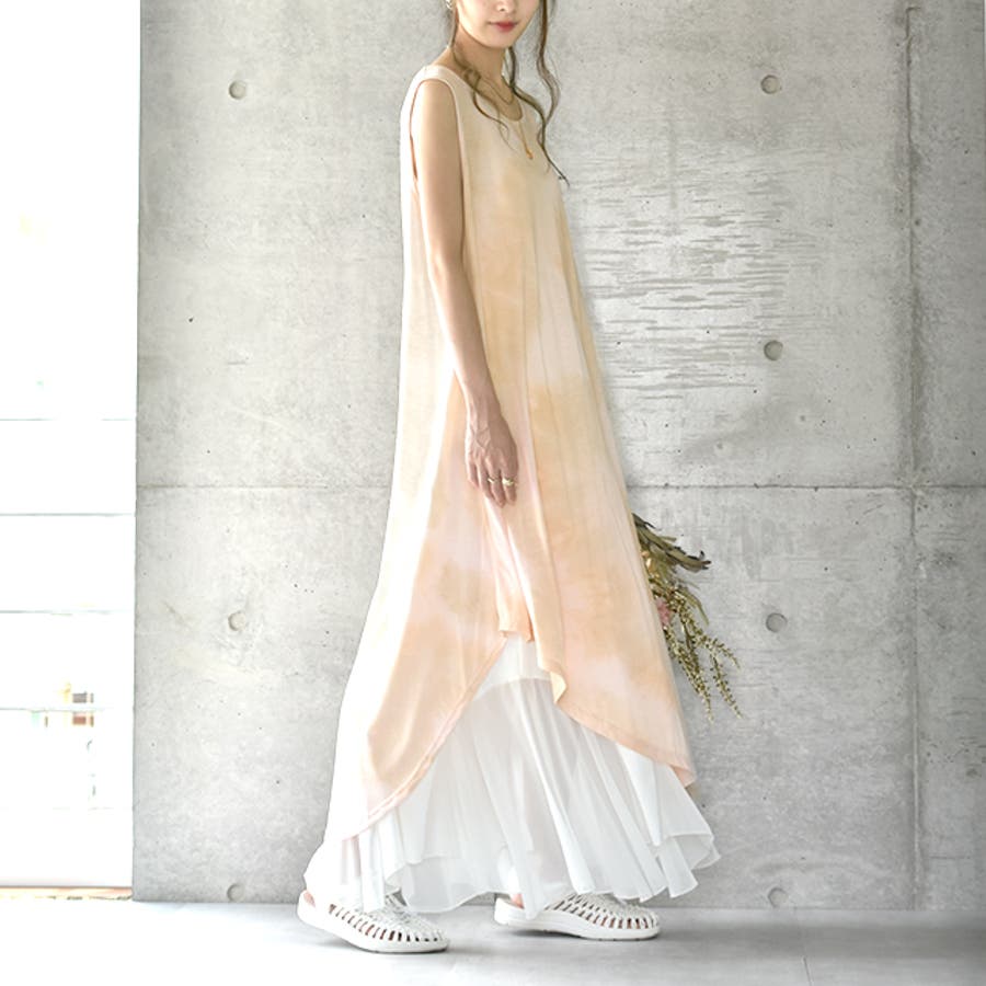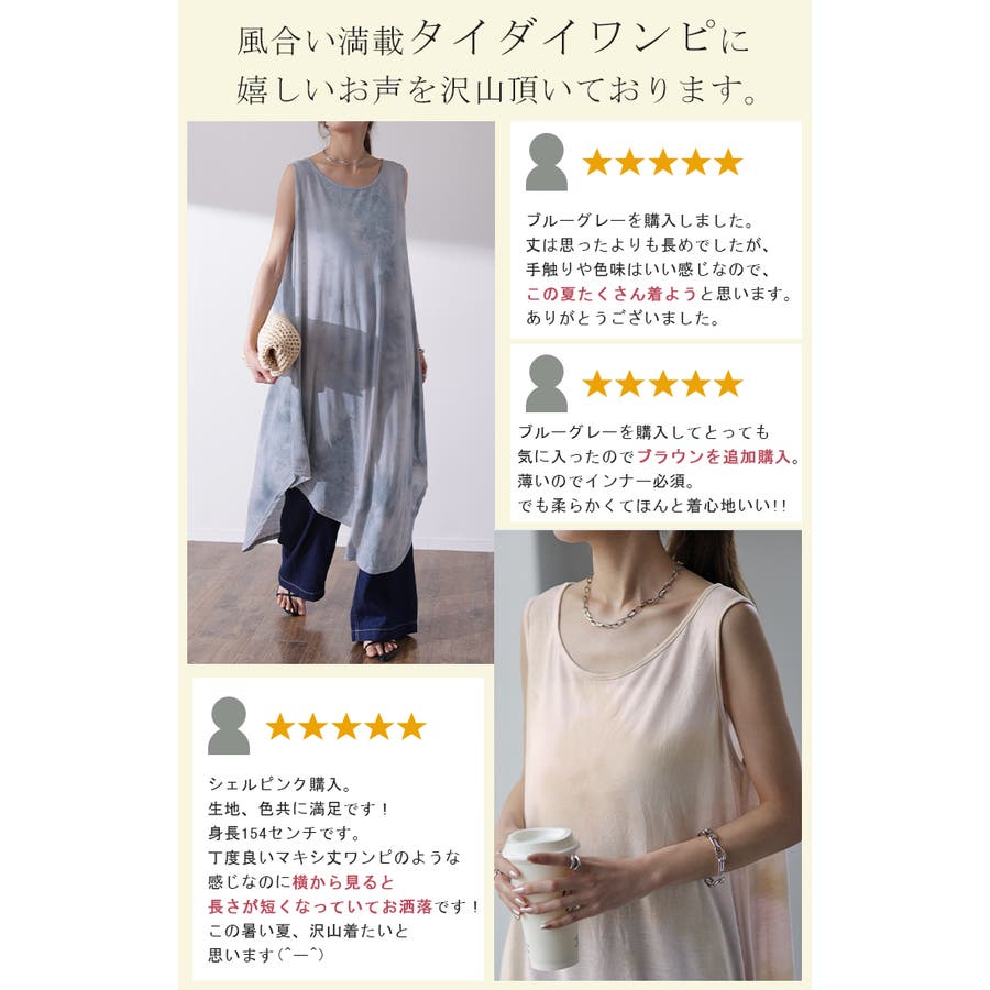 投稿日:2022.08.21白のインナーワンピと合わせて着ています!!ピンクを購入したのですが、タイダイ濃くなくいい感じです。下にジーパンでも合いそうなきがしています。