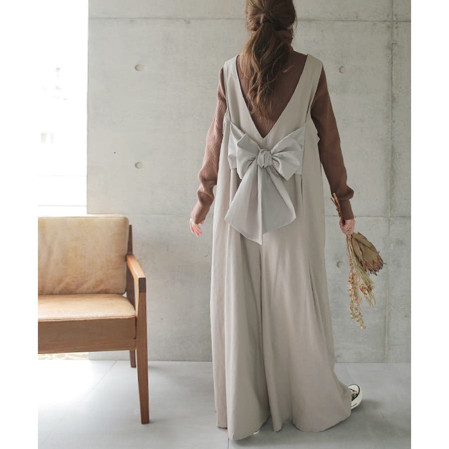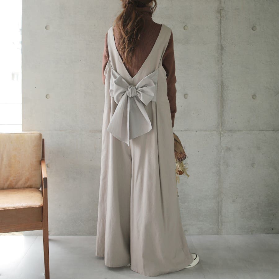 たっぷりとしたワイドシルエットでリラックスした履き心地ながらも、リボンでメリハリのあるシルエットを演出。