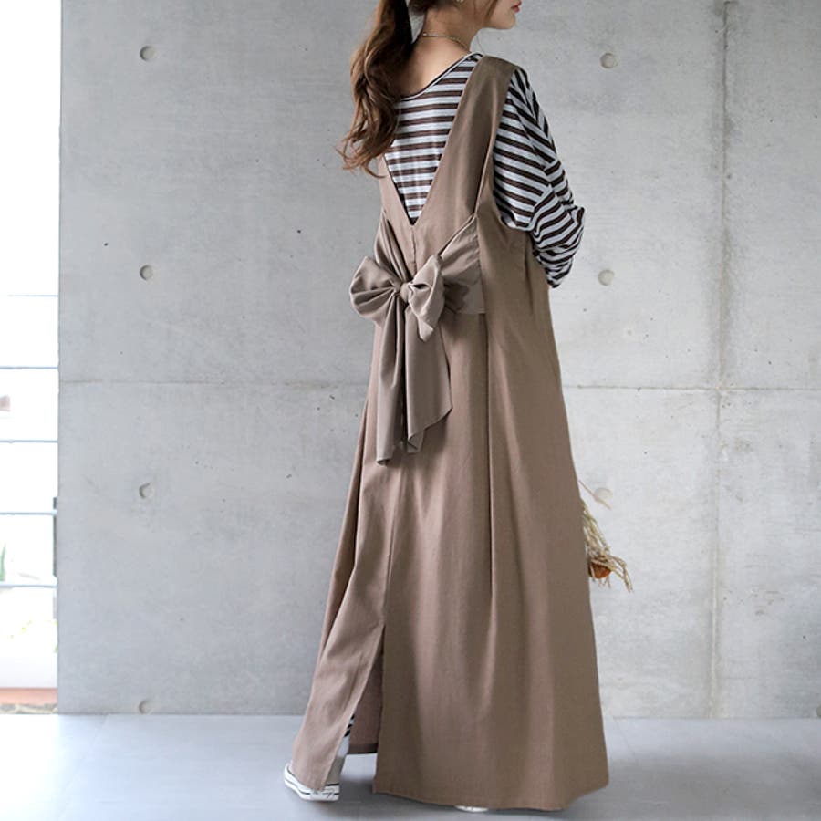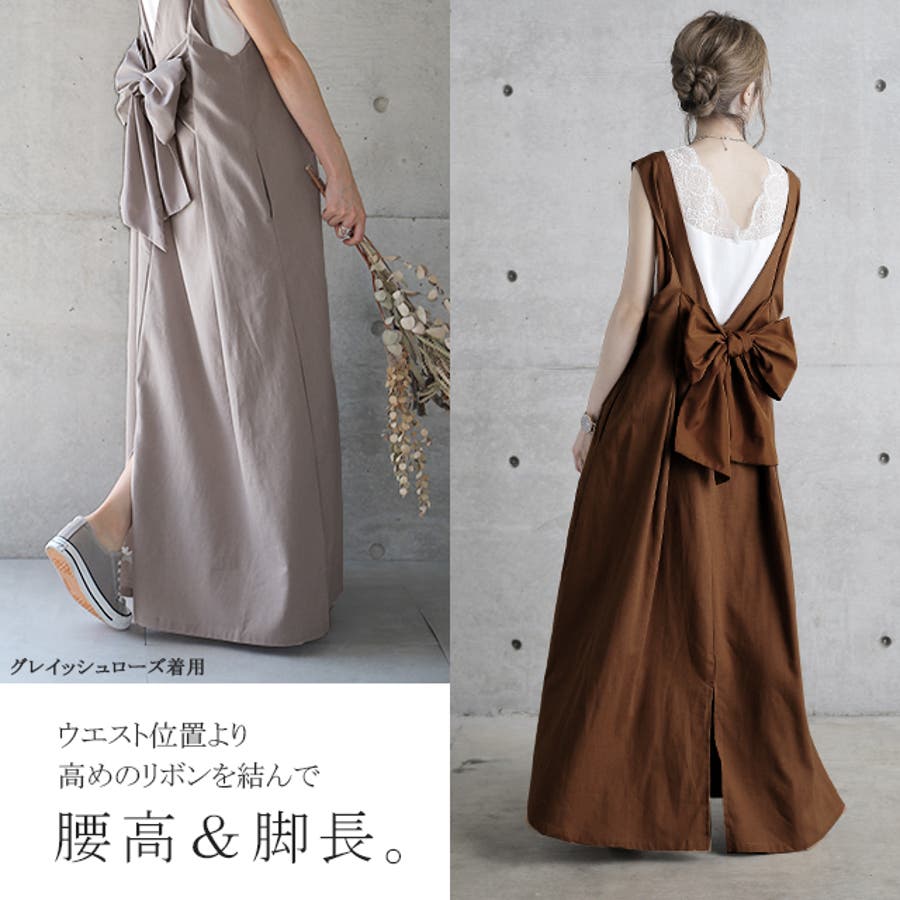 ワンピース レディース サロペット マキシワンピース ロングワンピース バック
