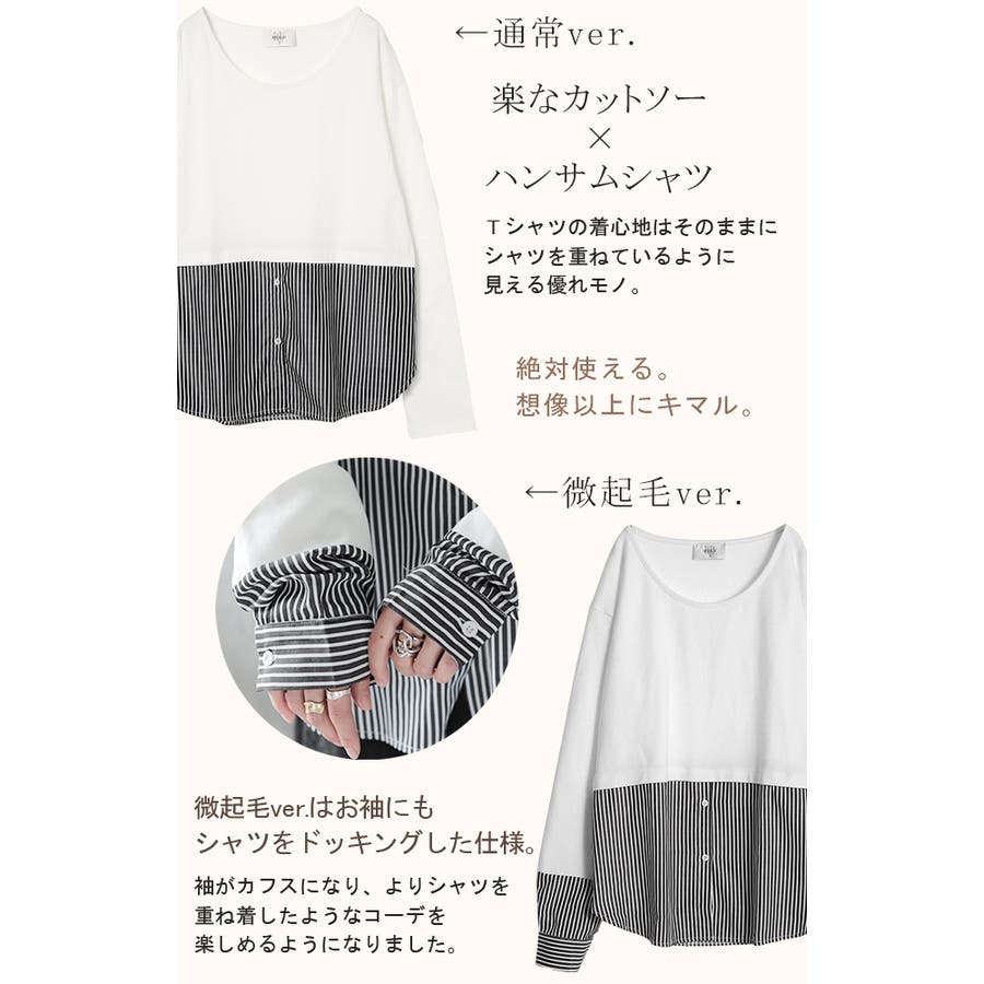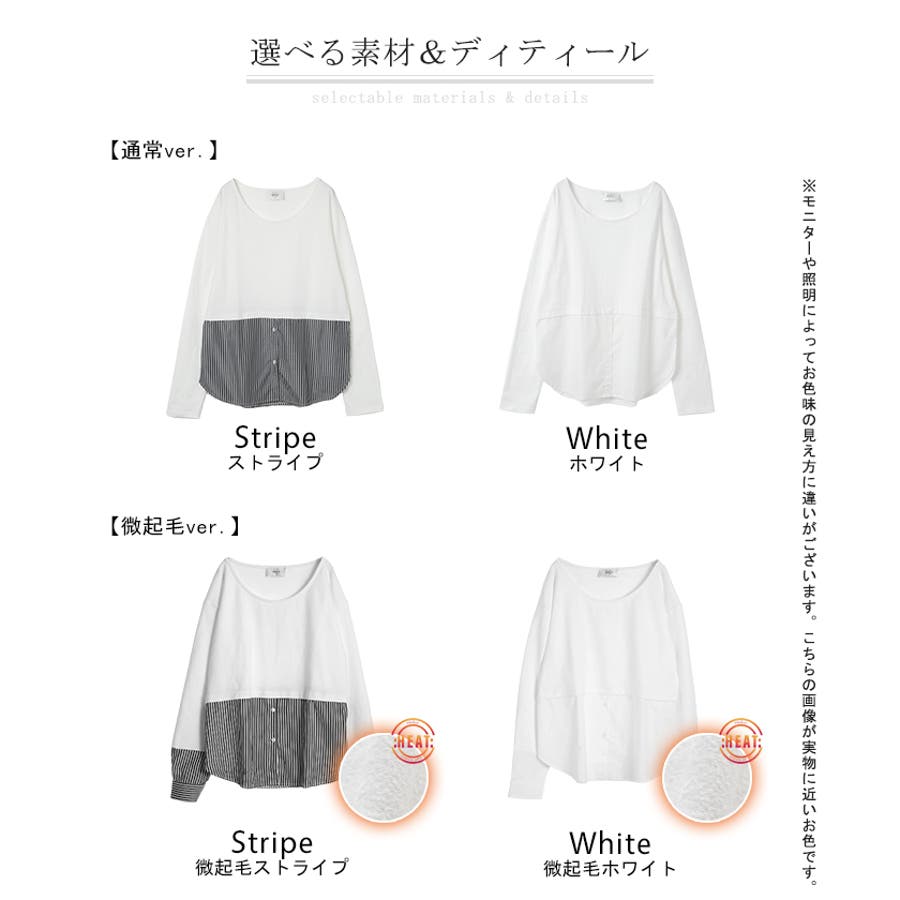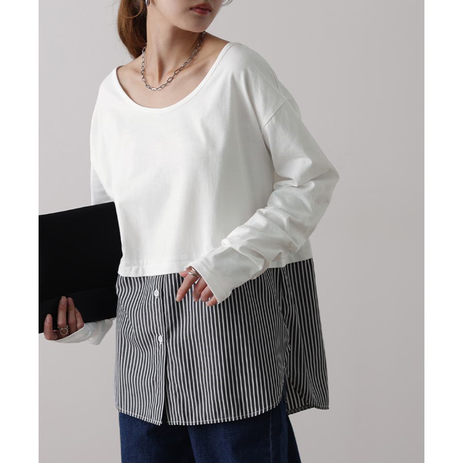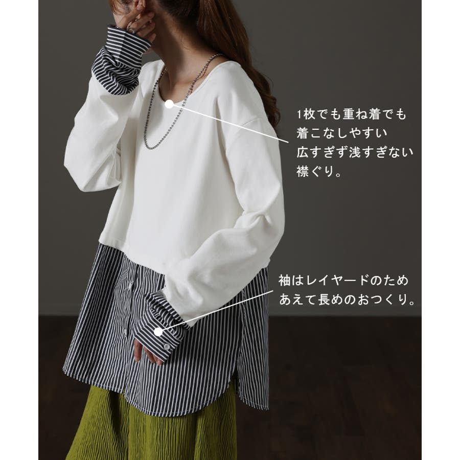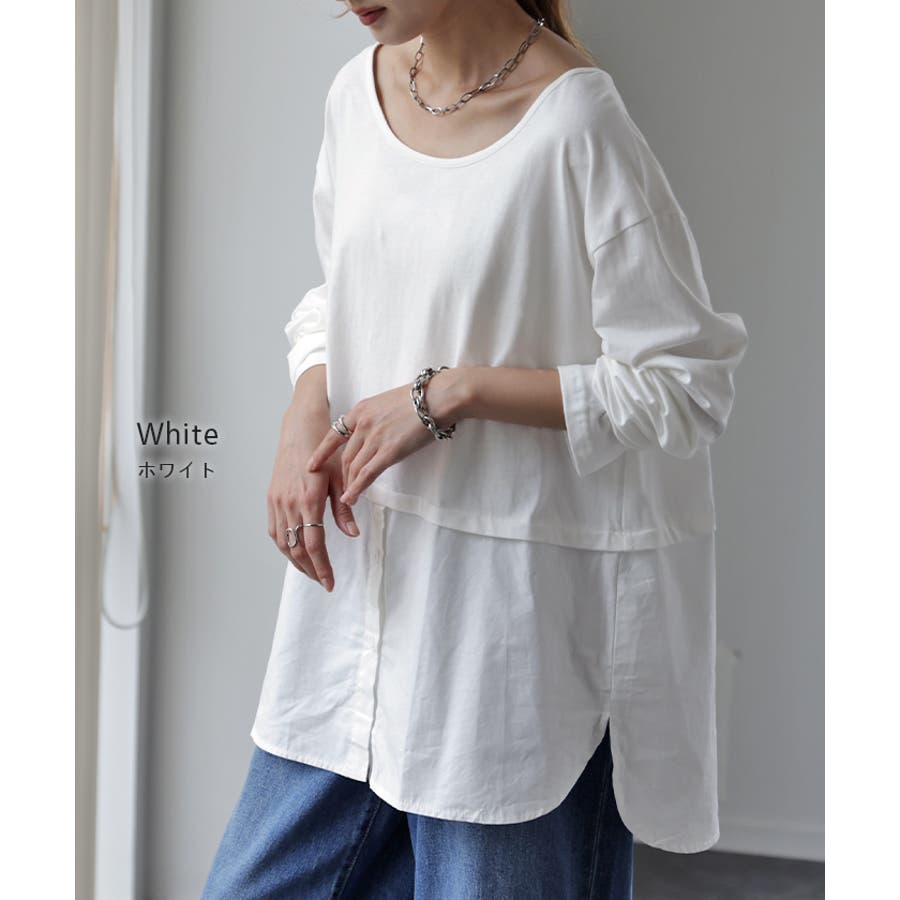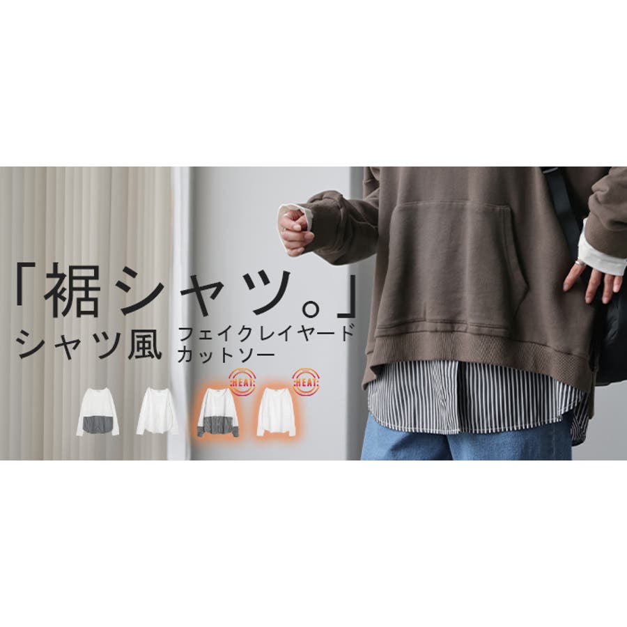 カットソー レイヤード トップス レイヤードシャツ 付け裾 長袖 レディース