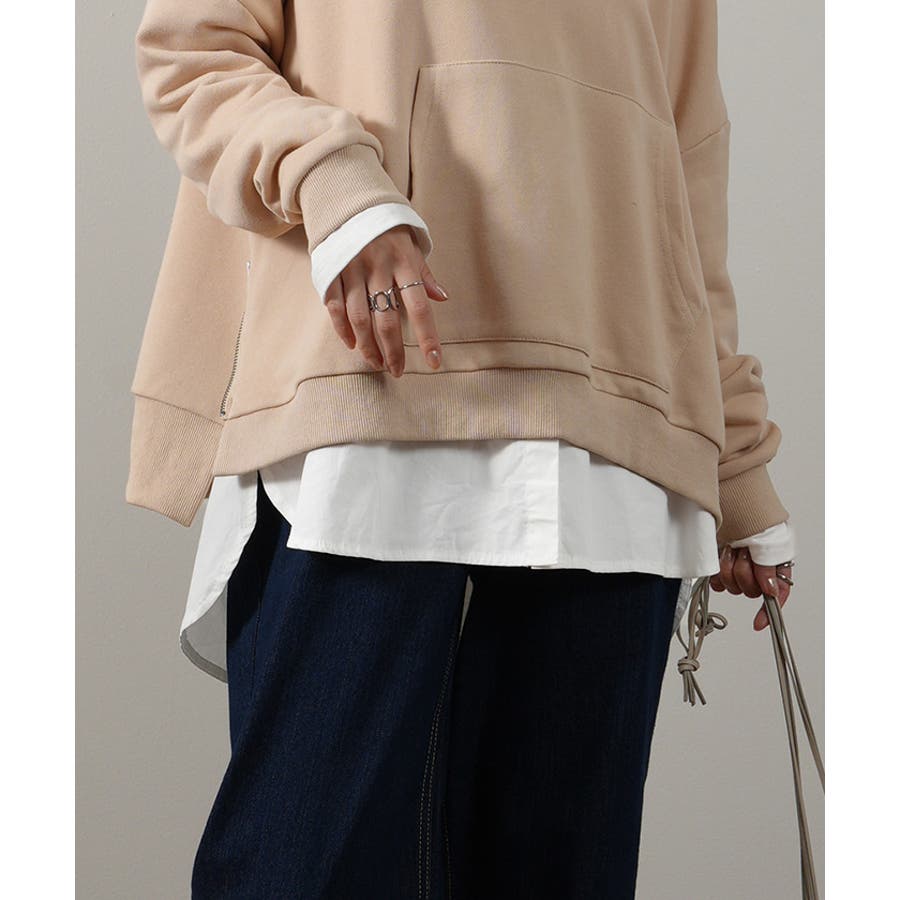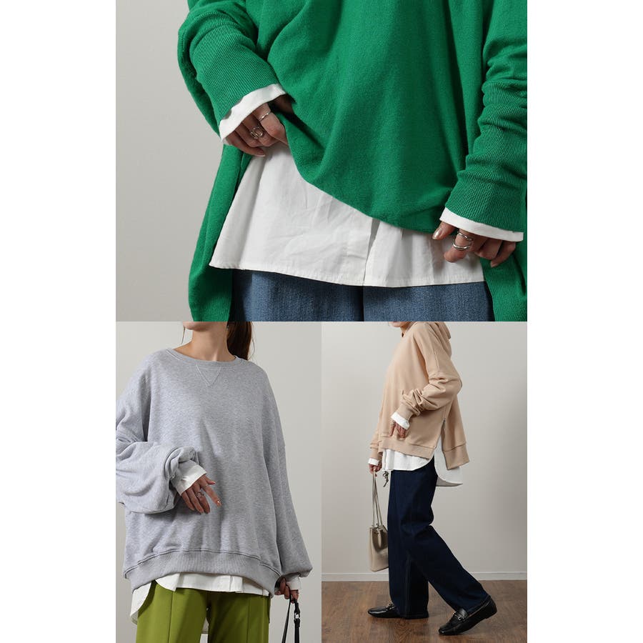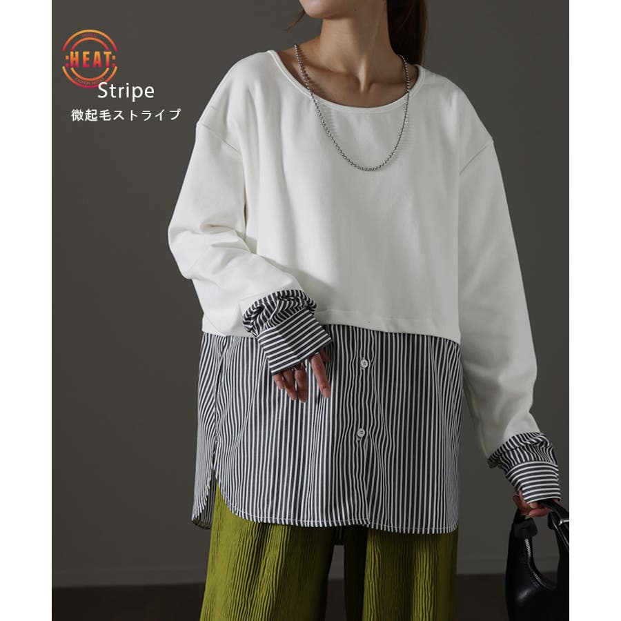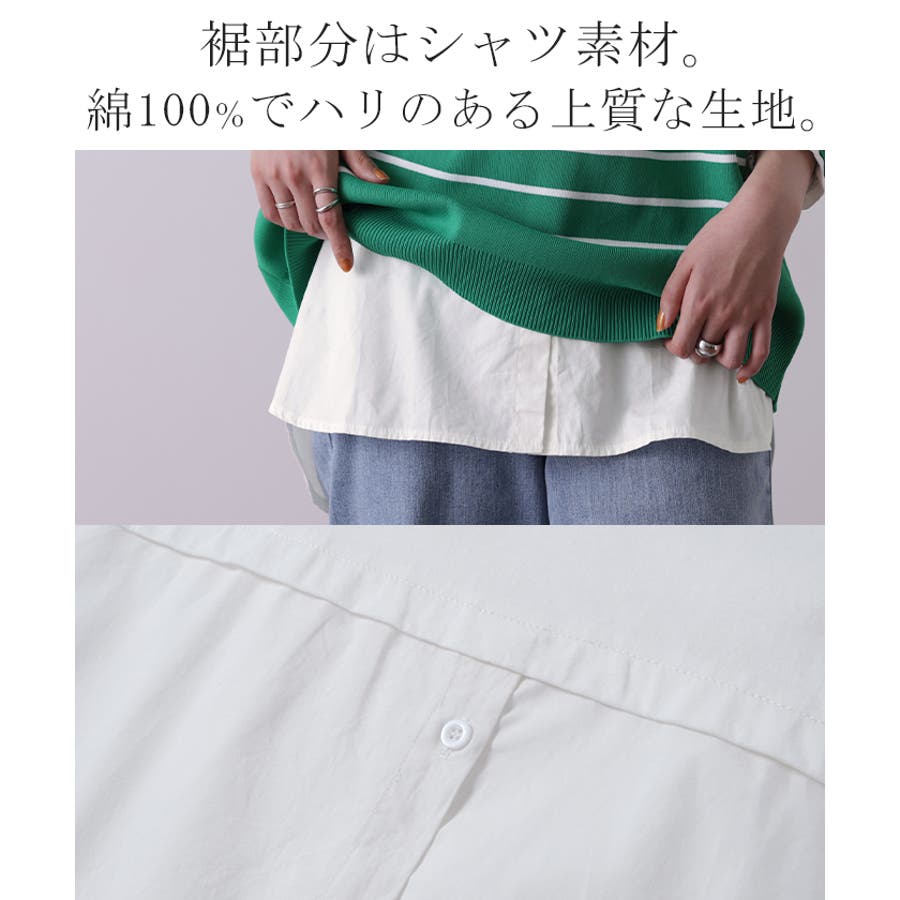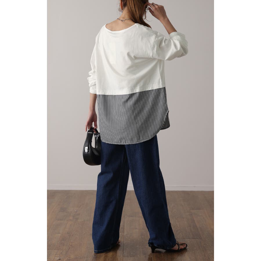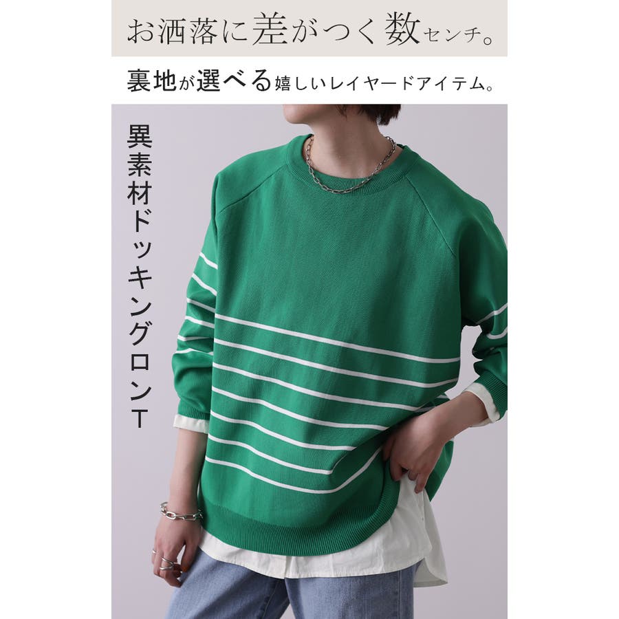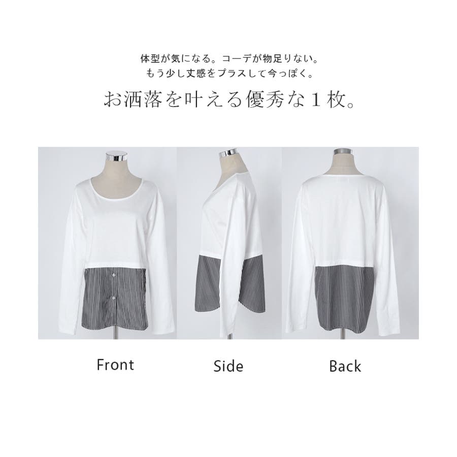 カットソー レイヤード トップス レイヤードシャツ 付け裾 長袖 レディース