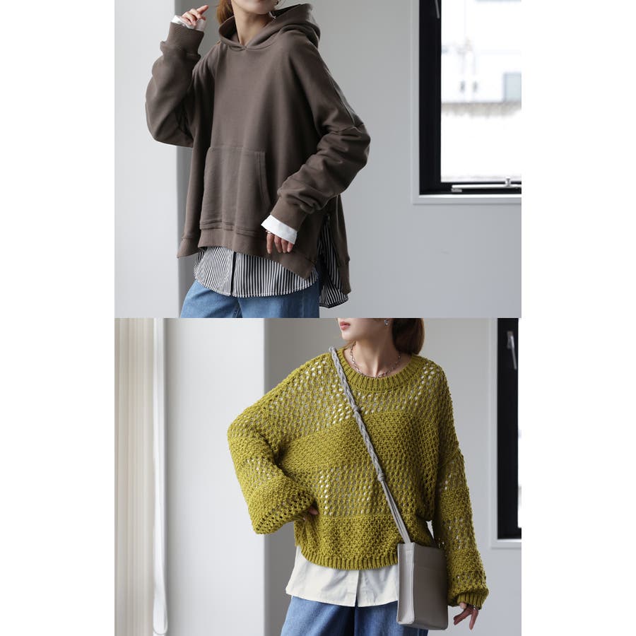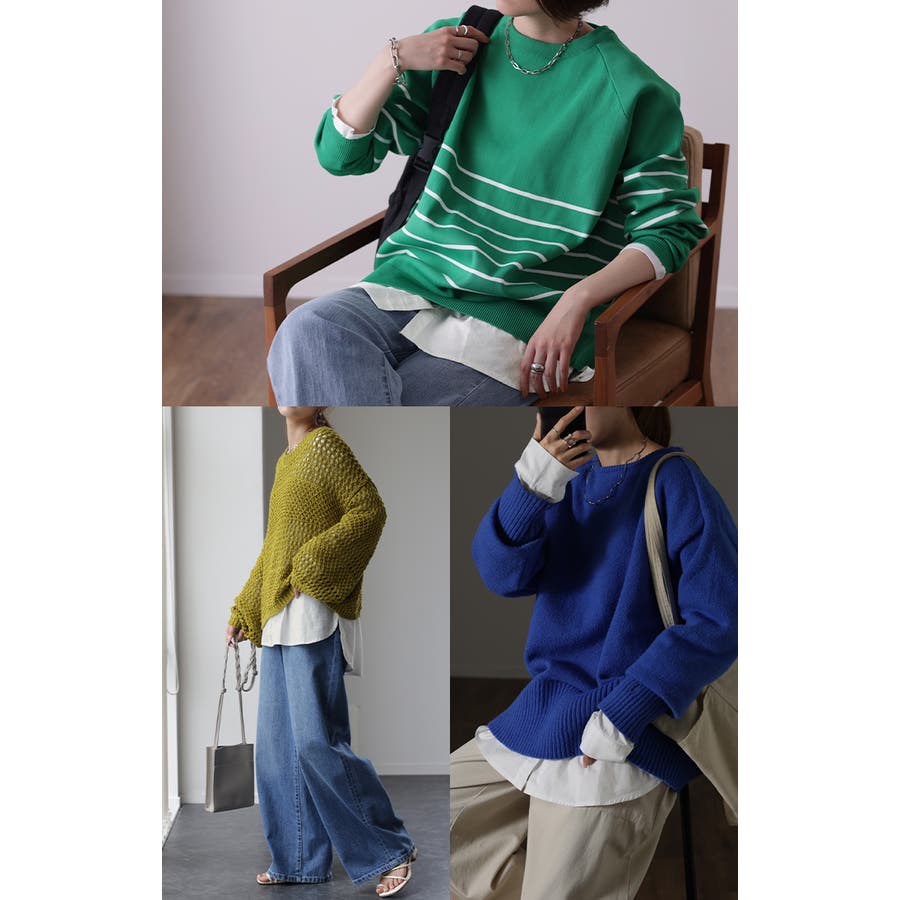 二ットやトレーナーなどとレイヤードすれば重ね着上手でこなれた印象になります。