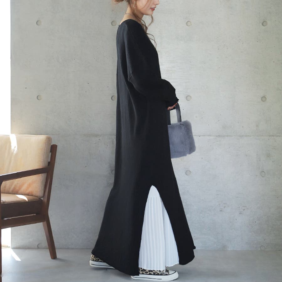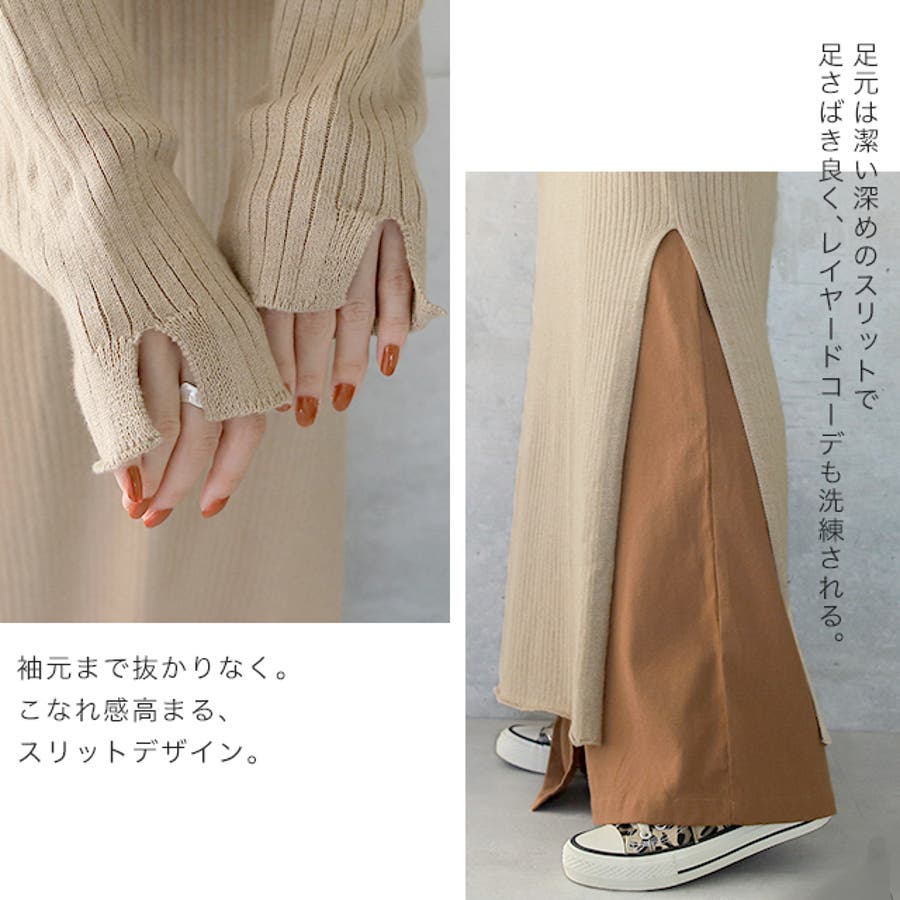 裾には深めのスリットが入りレイヤードコーデも洗練されます。