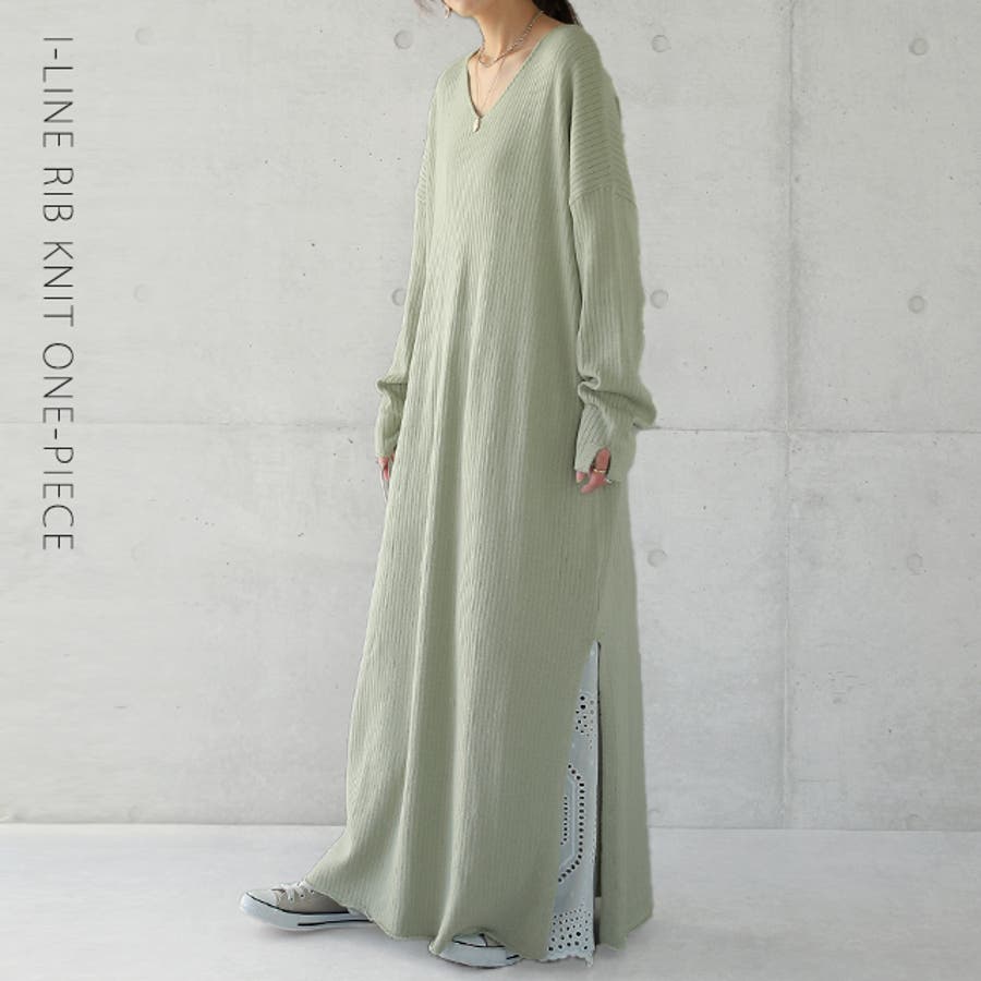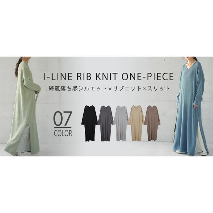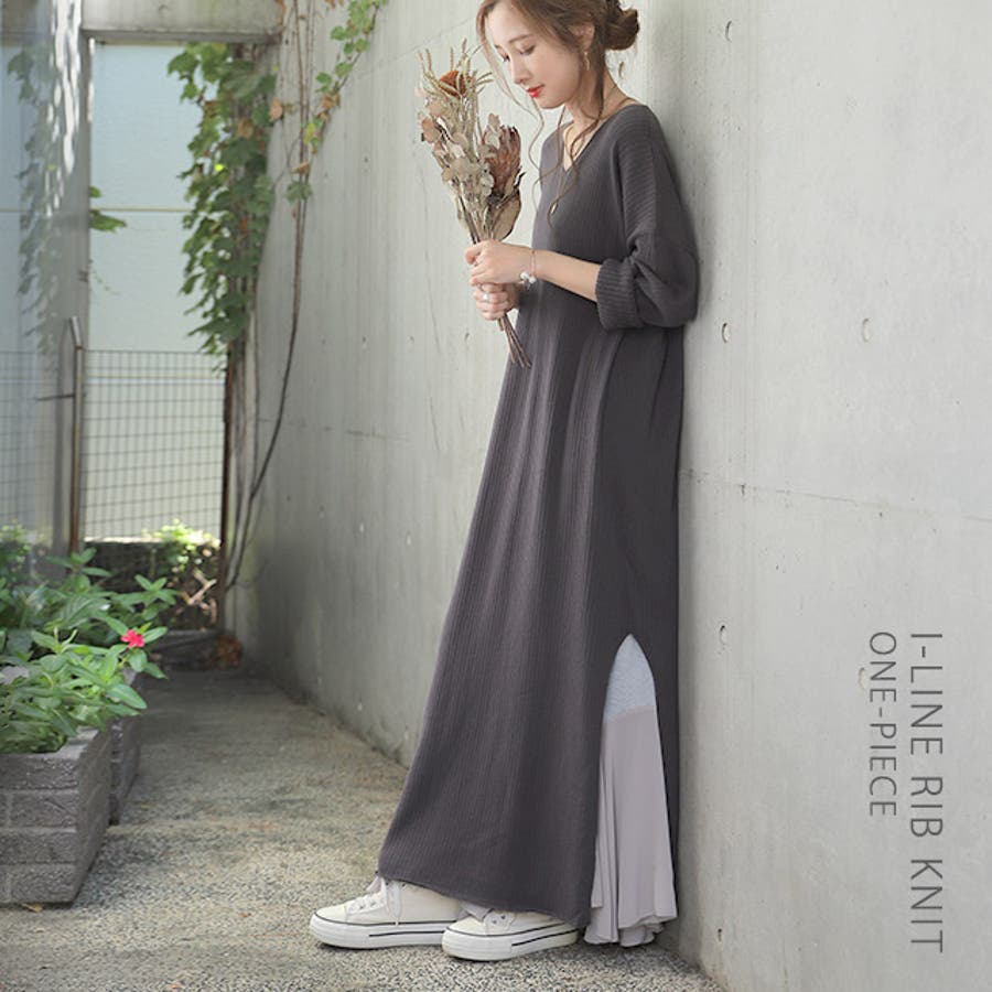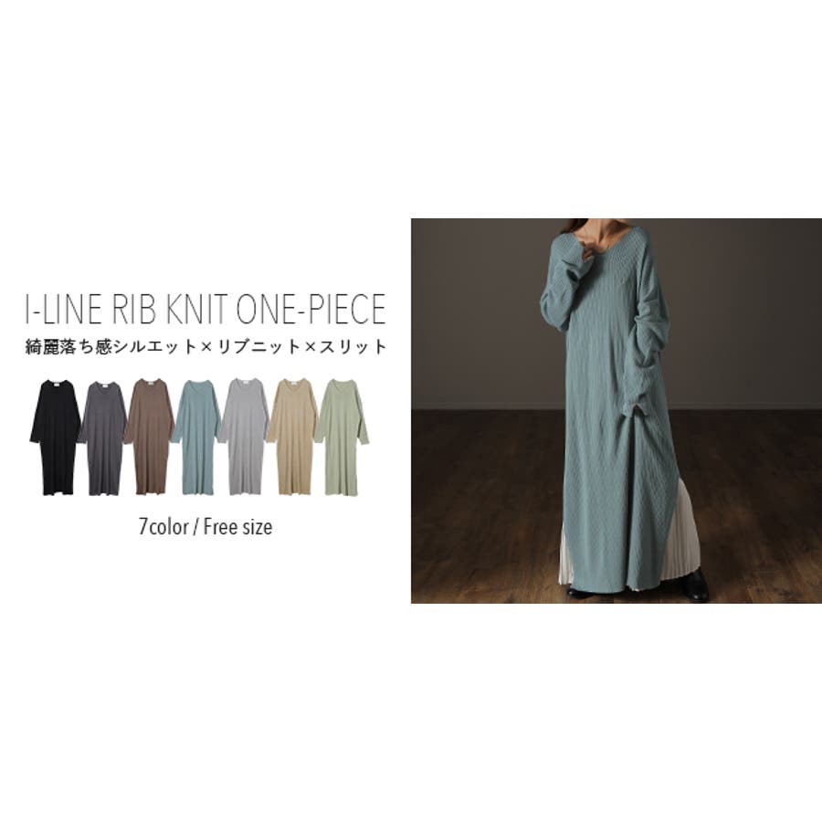 綺麗なシルエットのリブニットワンピースです。