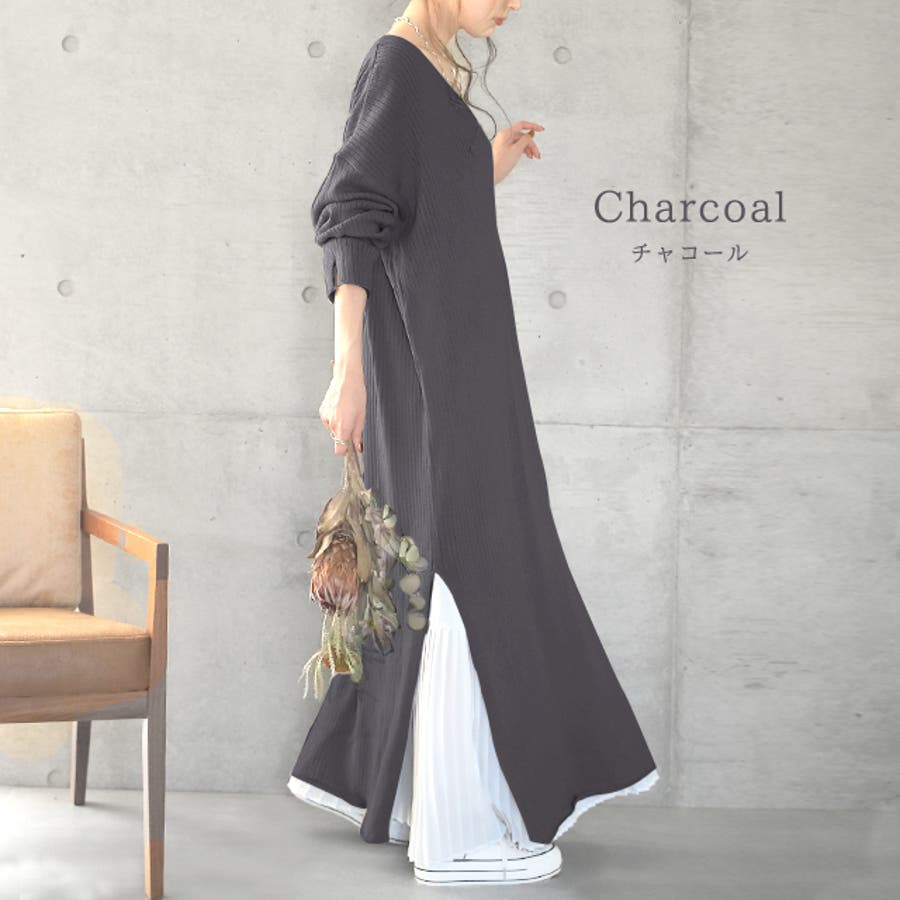 ニットワンピ 膝下 マキシワンピース マキシワンピ マキシ ロングワンピ バイカラー Vネック 体型カバー 着痩せ カジュアルシンプル アンクルスタイル 長い スリット 着痩せ ロングニットワンピース ロングニットワンピ ロングニット キレイめ 無地 シンプルチャイティー モカ ブラウン カシューナッツ ベージュ ブラック チャコールグレー グレー チャコール 茶 茶色 肌色 灰色 黒 黒色フリーサイズ M L 2L 3L XL XXL 2XL 20代 30代 40代 50代 おしゃれ お洒落 オシャレ 可愛い かわいいカワイイ ハグユーHUG.U HUGU