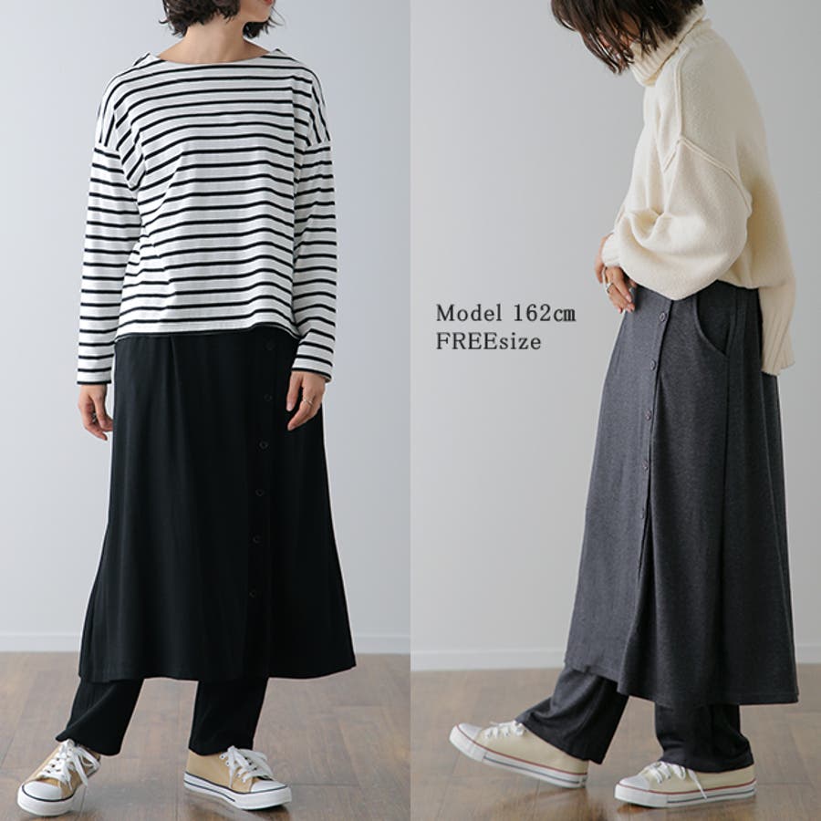 投稿日:2023.12.26ズボンとスカートの一体化の商品を初めて買いました。満足の商品です。生地も気持ち良く、スカートも長すぎず短すぎずって感じの、ちょうどよい長さと思います。