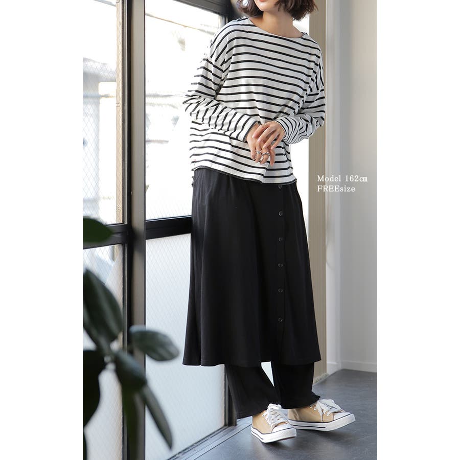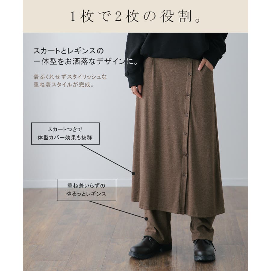 いつものトップスも新鮮に見せてくれるレギンス付きスカート。