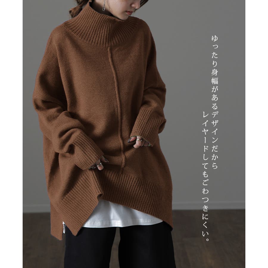 ナチュラルで柔らかい着心地が魅力のハイネックニット。