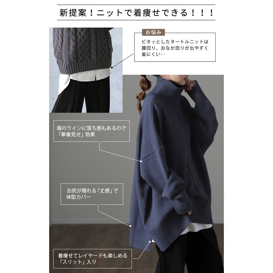 投稿日:2022.12.12ラインを拾わない、ざっくりとしたニットでとてもよきです。ただ、ショートボブの私にはタートル部分が長すぎて折らないと襟足が逆立ってしまいます。