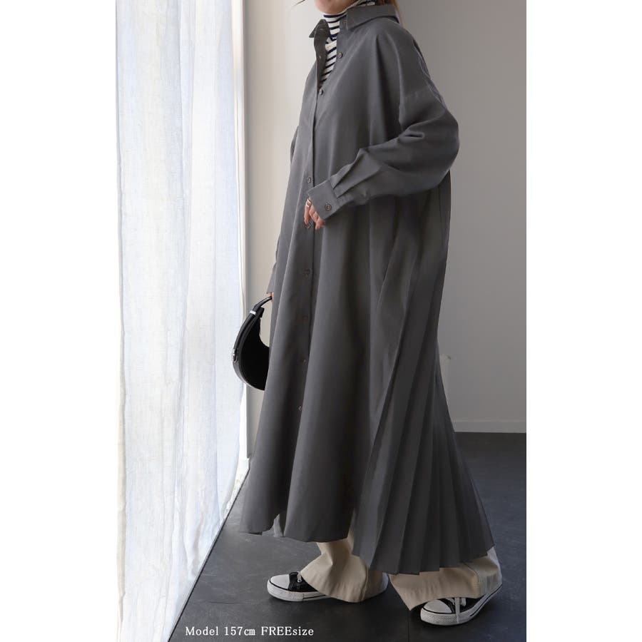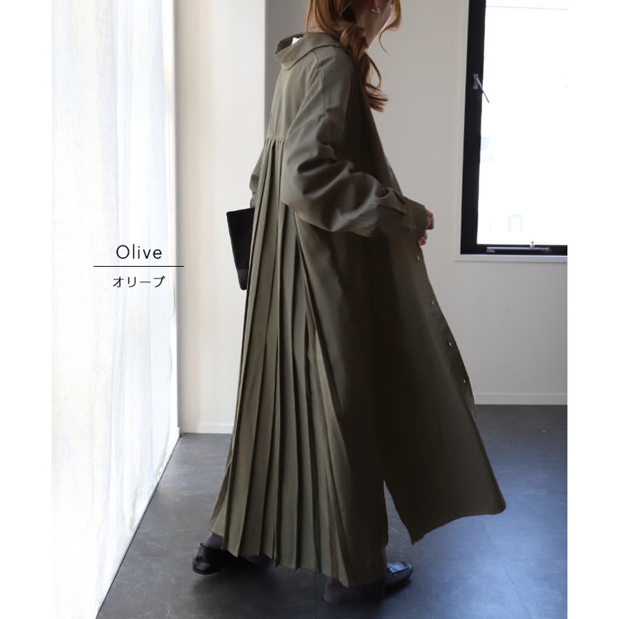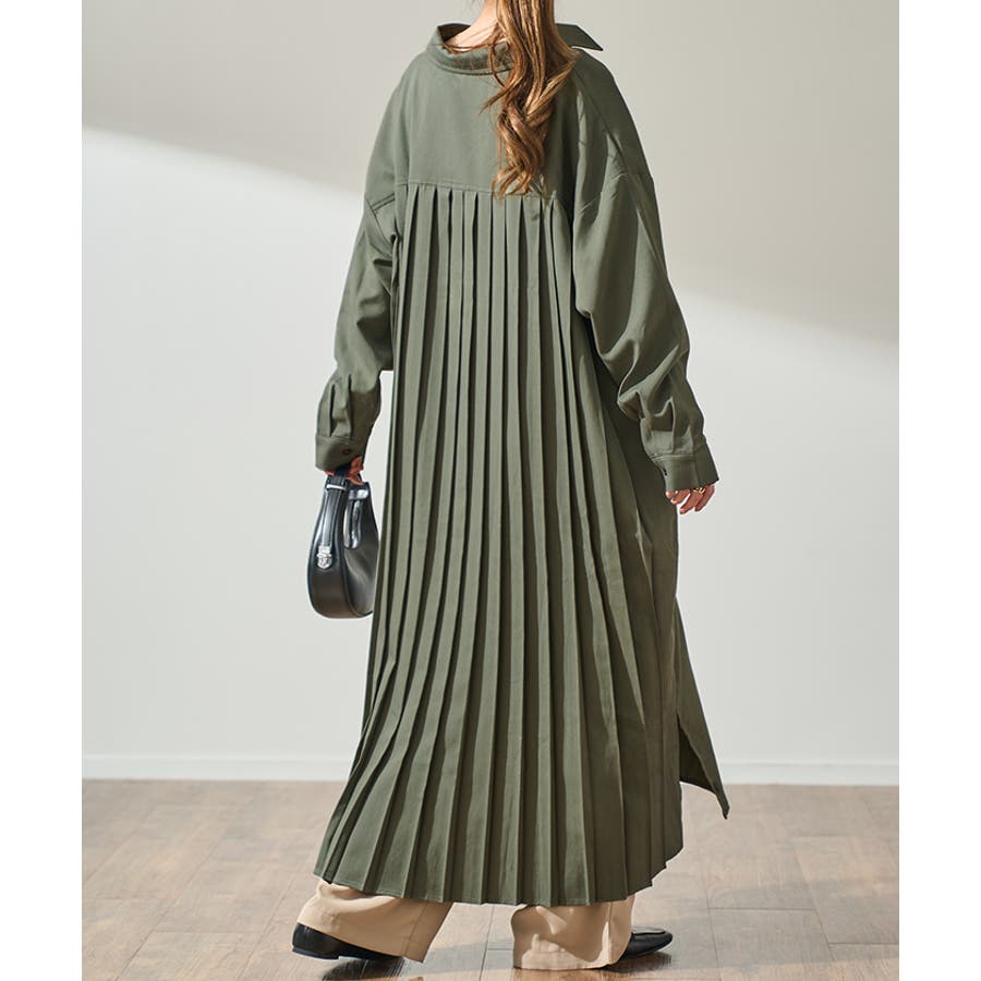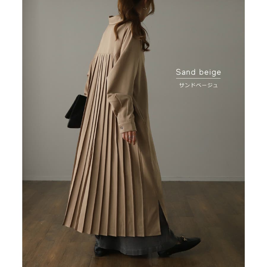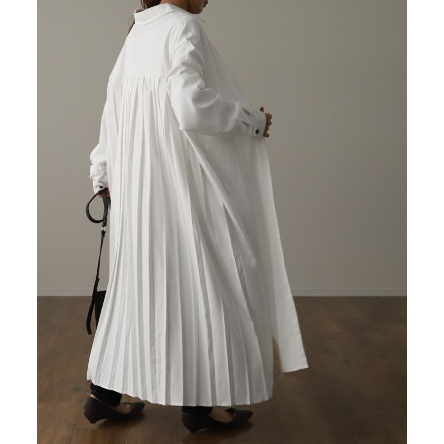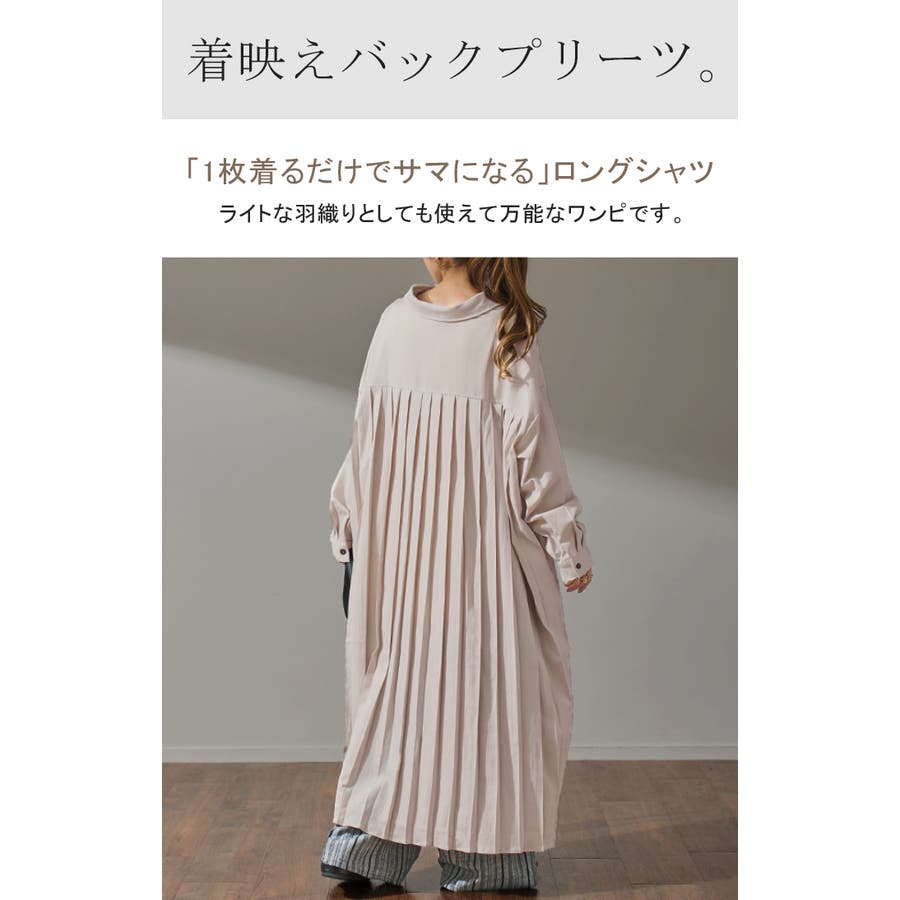 バックスタイルにプリーツ加工を施した技ありシャツワンピースです。