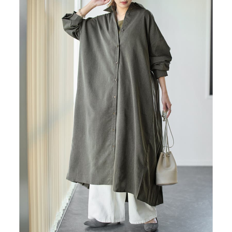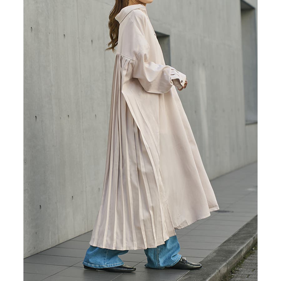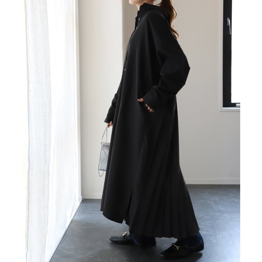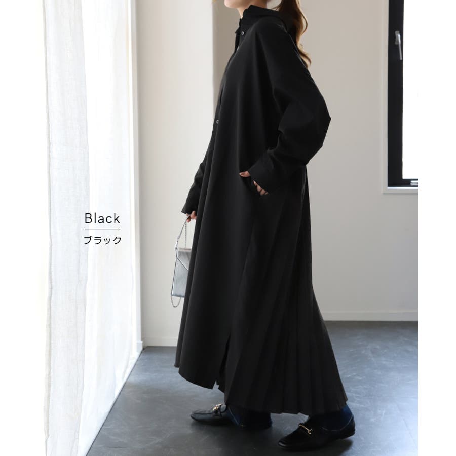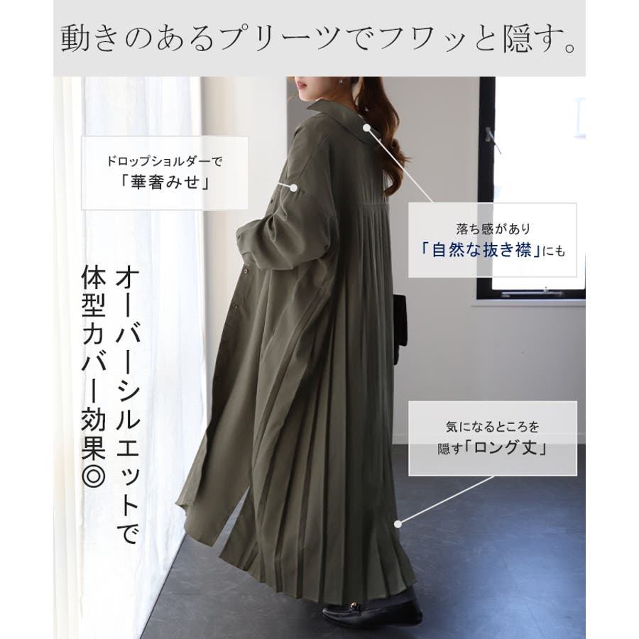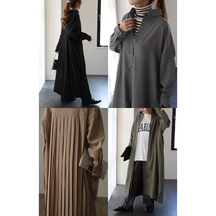 バックスタイルにプリーツ加工を施した技ありシャツワンピースです。