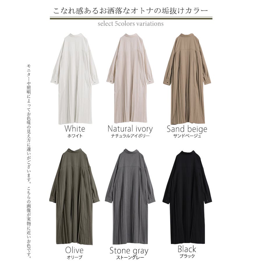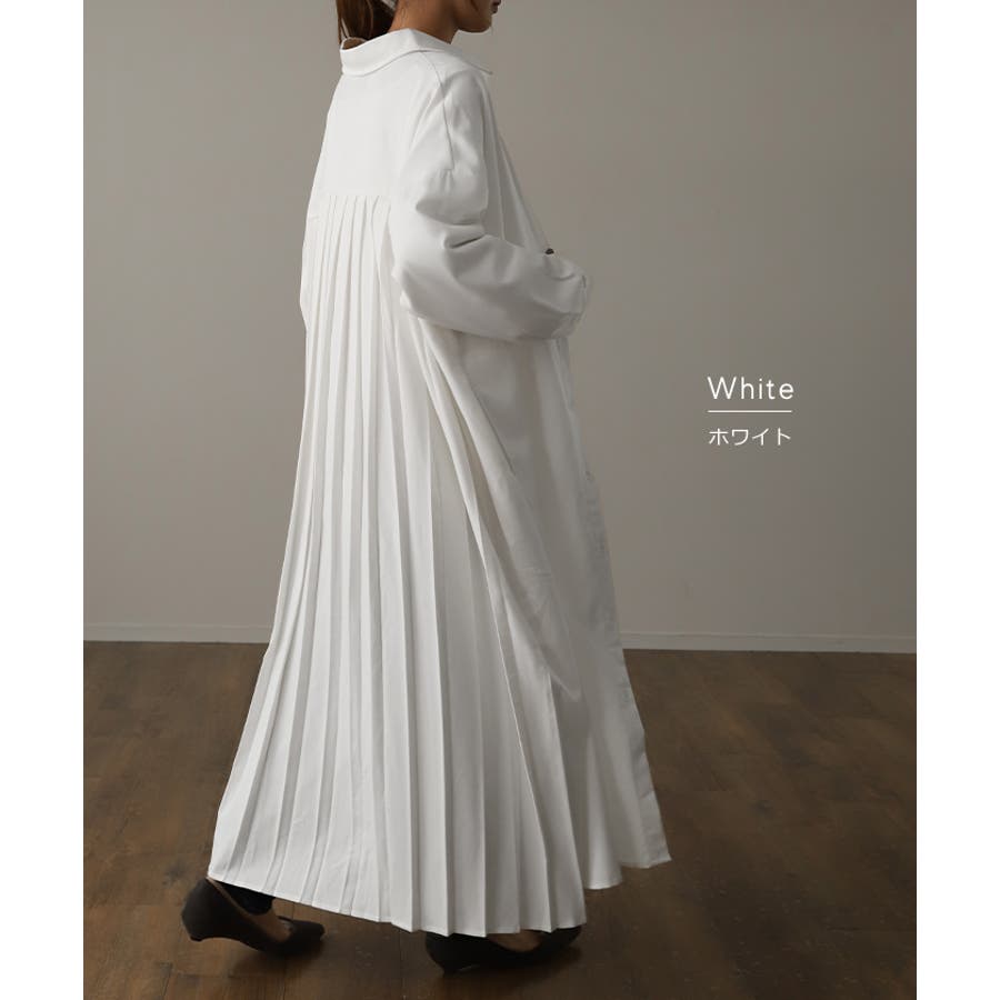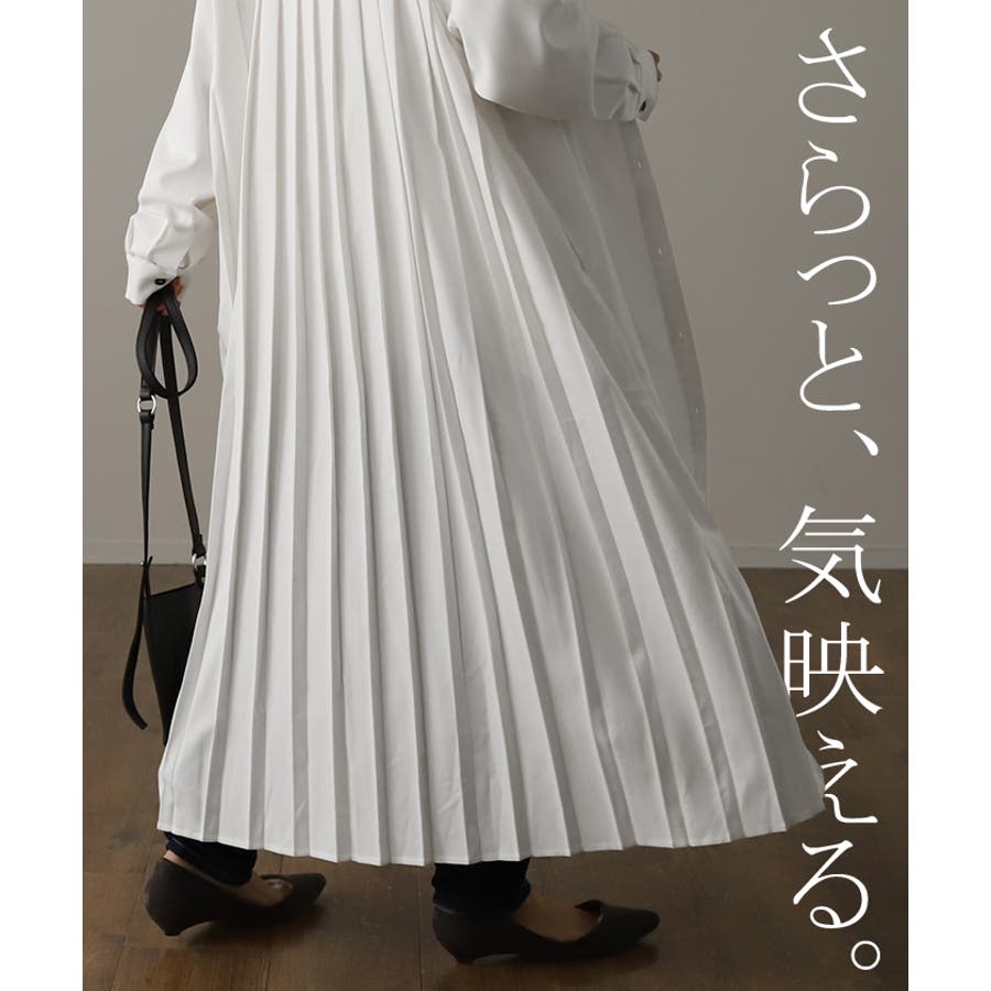【ホワイト】ワンピース レディース シャツワンピース 長袖 ロング プリーツ ロングワンピ