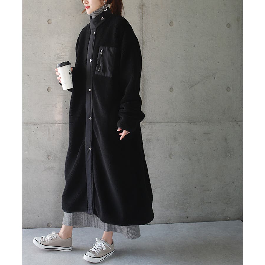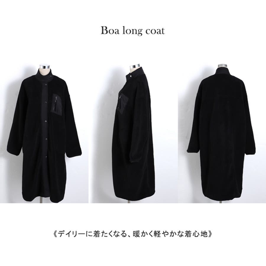 ハイネック&ジップで旬のコーデにぴったりのボアロングコート。