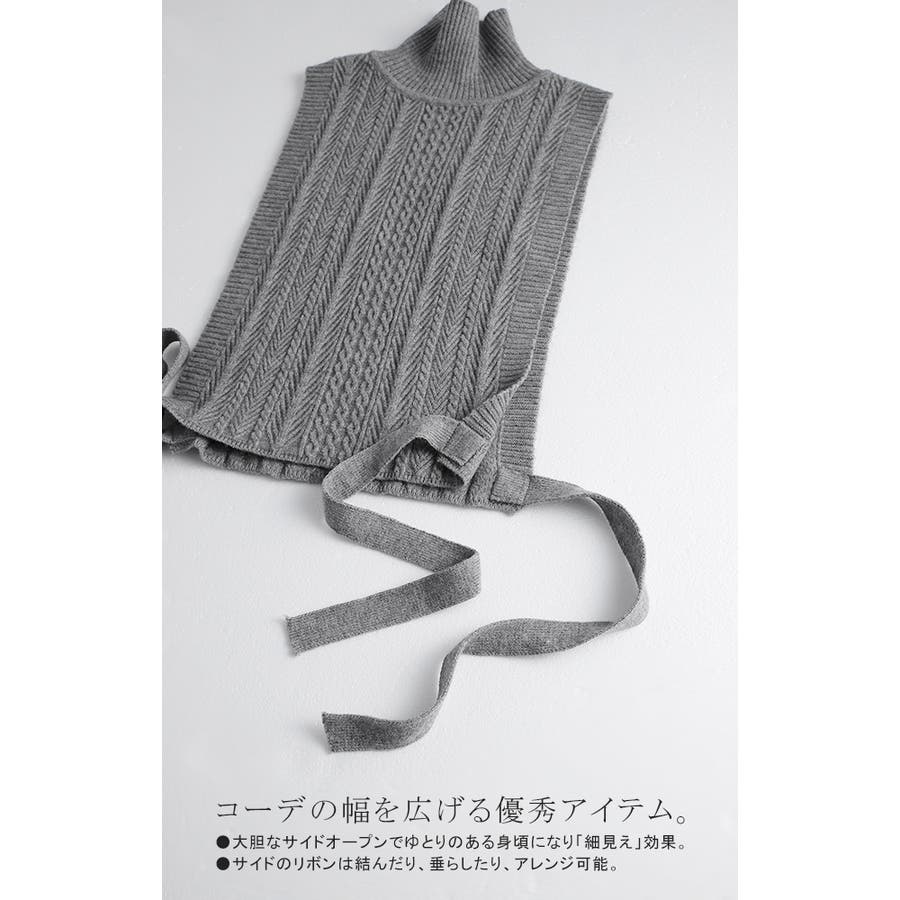 ベストはタートルネックで小顔効果も期待でき、サイドはリボン結びでも一回結びで垂らしてもおしゃれです。