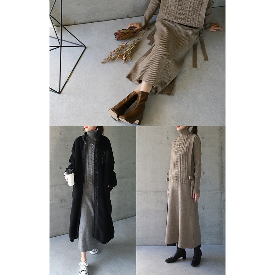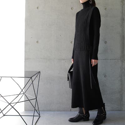 ニットベストとニットワンピースのセットアップです。それぞれ単品使いもできるので着回し力も抜群。