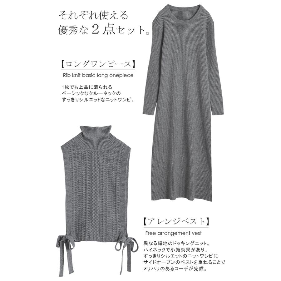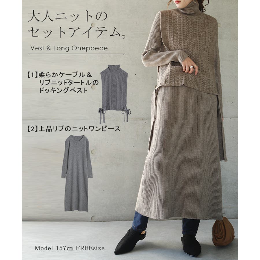 ワンピ ニットワンピ ニットセットアップ ニットアップ ベスト ベストセット ジレ 2点セット 2way ロングワンピ ロング丈 ロング丈ワンピ ロング丈ワンピース マキシワンピース マキシ マキシワンピ マキシ丈ワンピース マキシ丈 ケーブル ケーブルニット リブ リブニット 長い レイヤード レイヤードワンピ レイヤードワンピース 膝下 クルーネック Uネック タートル タートルニット ハイネック サイド サイドオープン リボン サイドリボン ドッキング ドッキングニット 重ね 重ね着 レイヤード レイヤードコーデ レイヤードスタイル アレンジニット デザインニット モヘア 編みニット 長袖 ロングスリーブ リブ袖 お尻が隠れる 防寒 暖かい 体型カバー 着痩せ 細見え 小顔効果 カジュアル シンプル Iライン ロングニットレイヤードワンピース ロングニットワンピ ロングニット 旬コーデ 無地 シンプル きれいめ キレイめ リブ ベージュ グレー ブラウン ラテ ラテカラー 灰色 灰 茶 茶色 黒 黒色 フリーサイズ S M L 2L LL XL 20代 30代 40代 50代 女性 春夏 春 夏 AW 上品 オトナ 大人 おしゃれ お洒落 オシャレ 可愛い かわいい カワイイ HUG.U HUGU ハグユー はぐゆー