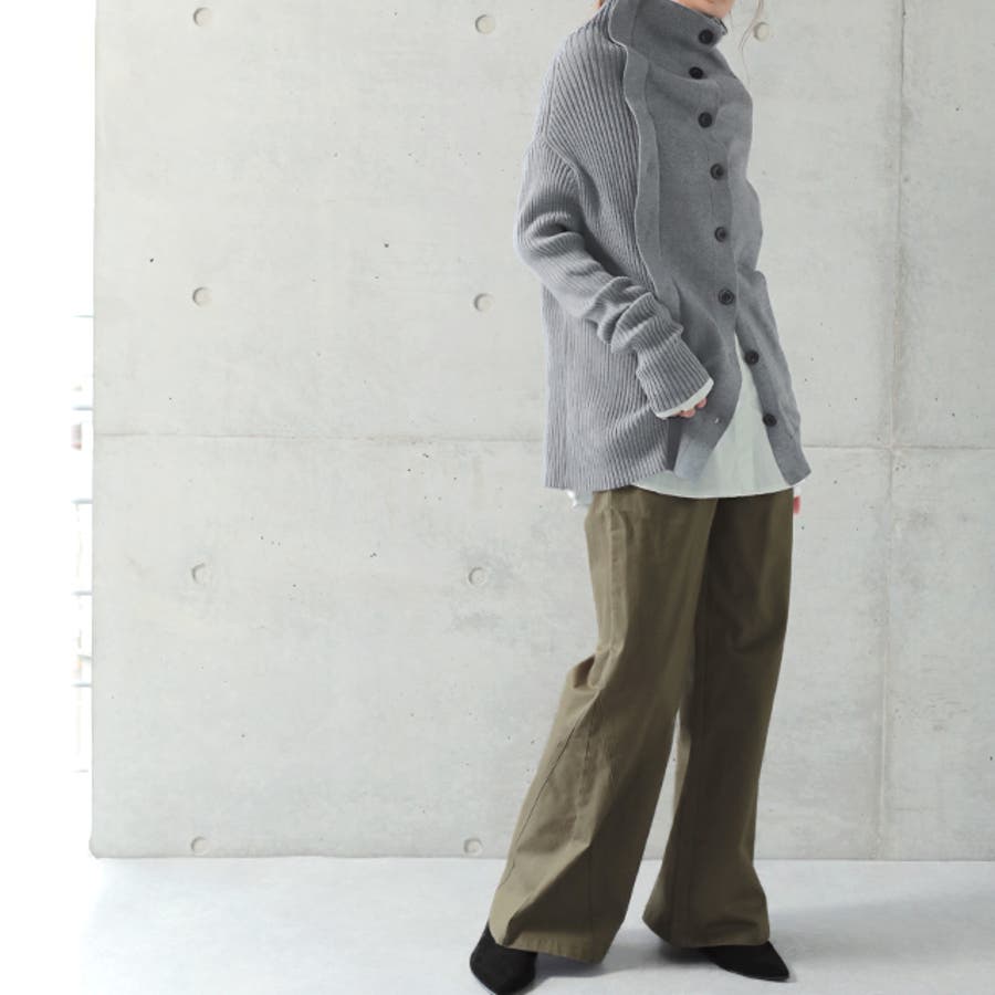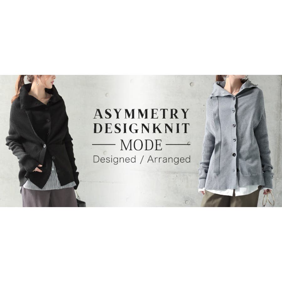 モード感たっぷりなアシメデザインが魅力のニットトップス。
