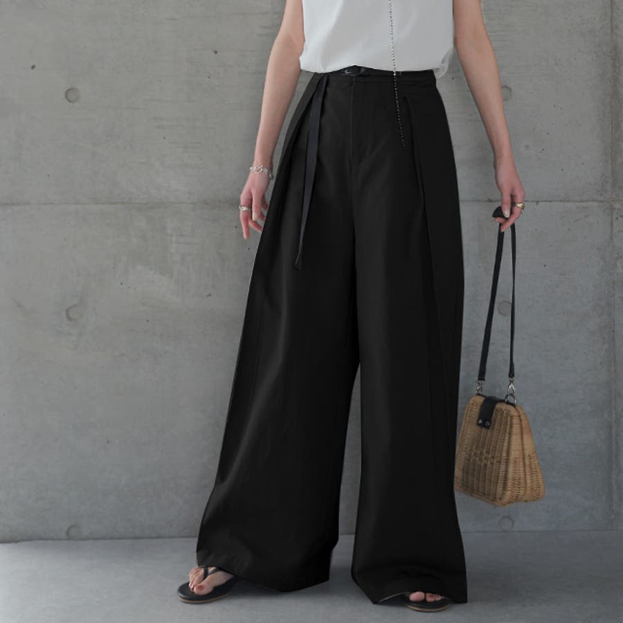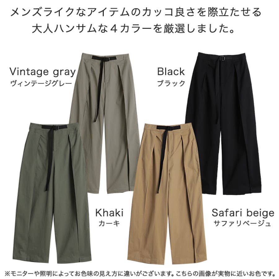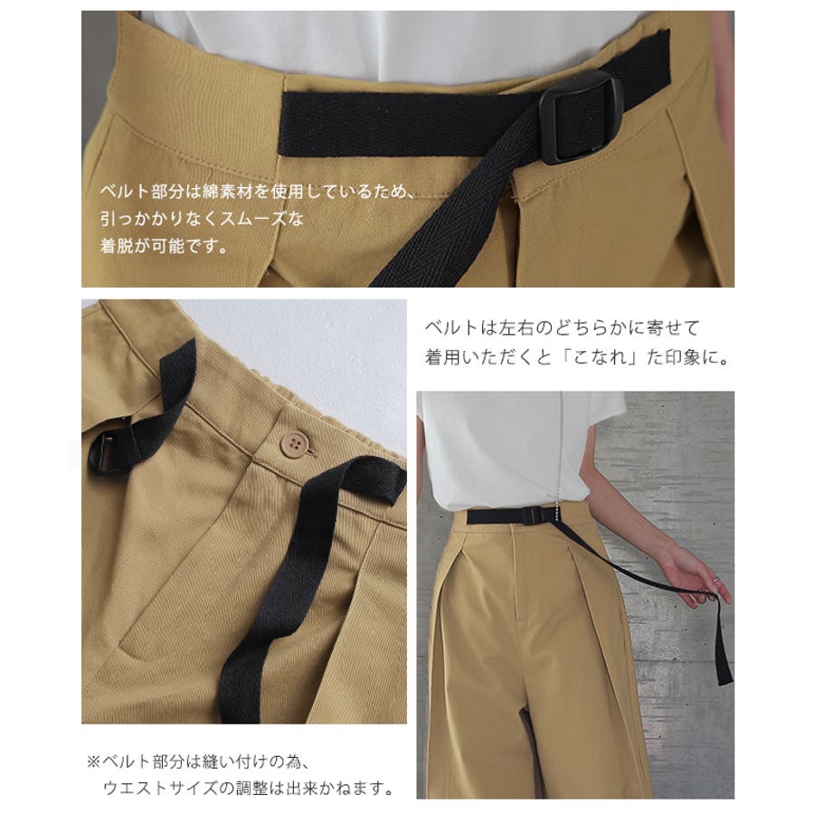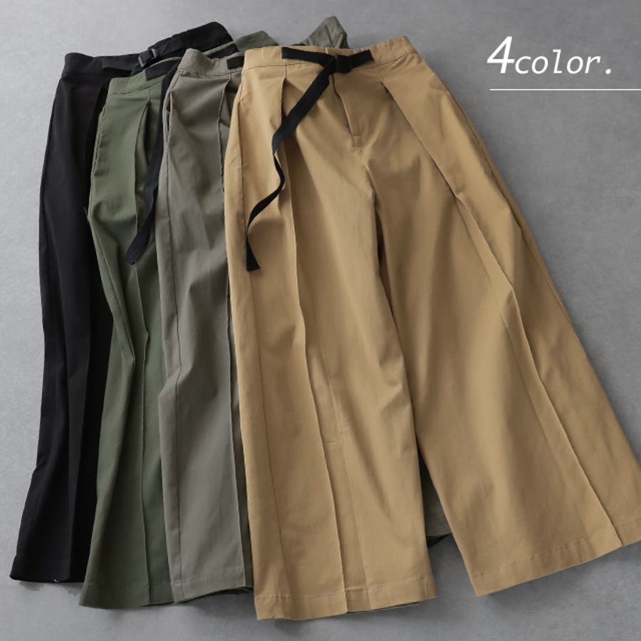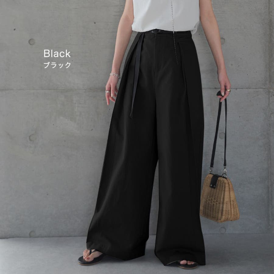 ワイドパンツ レディース パンツ ロング チノ ベルト ワイドパンツルック 黒