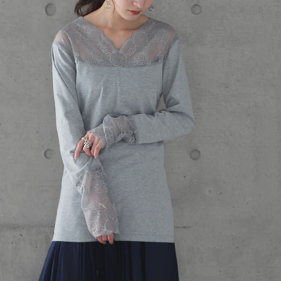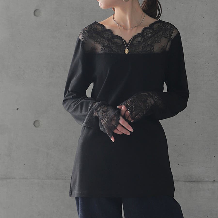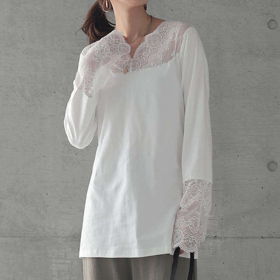 トップス レディース インナー レース 長袖 レイヤード カットソー Vネック