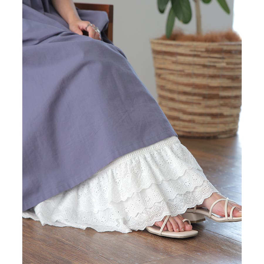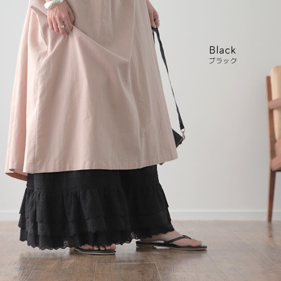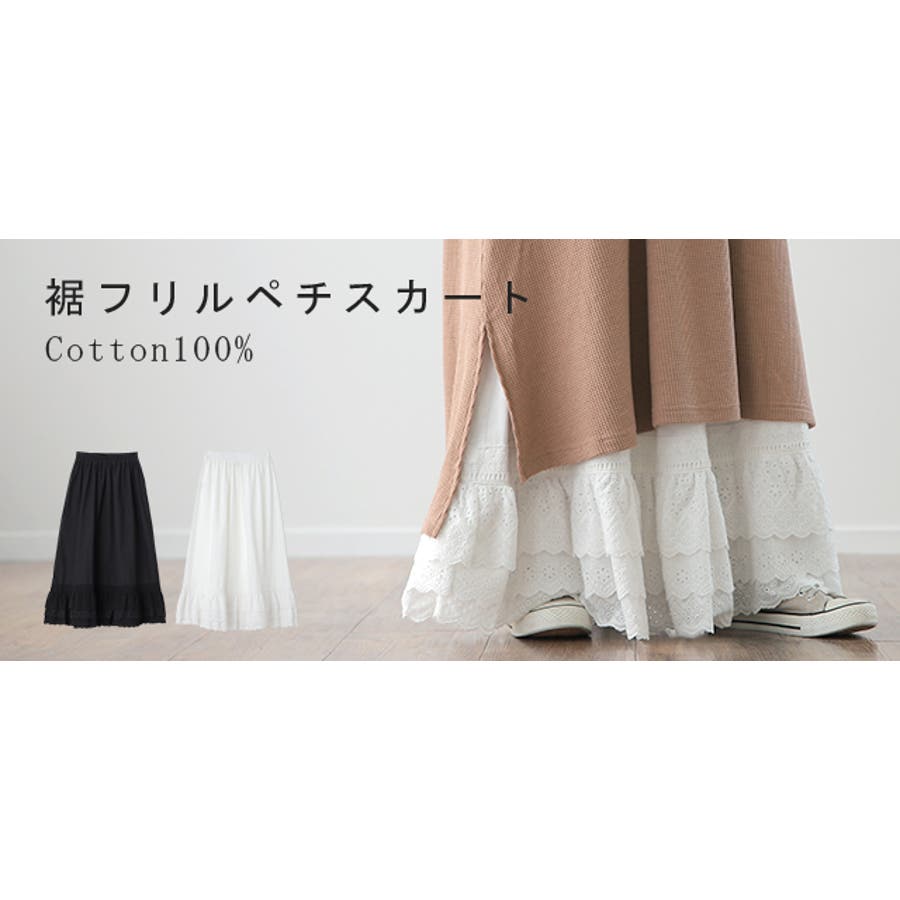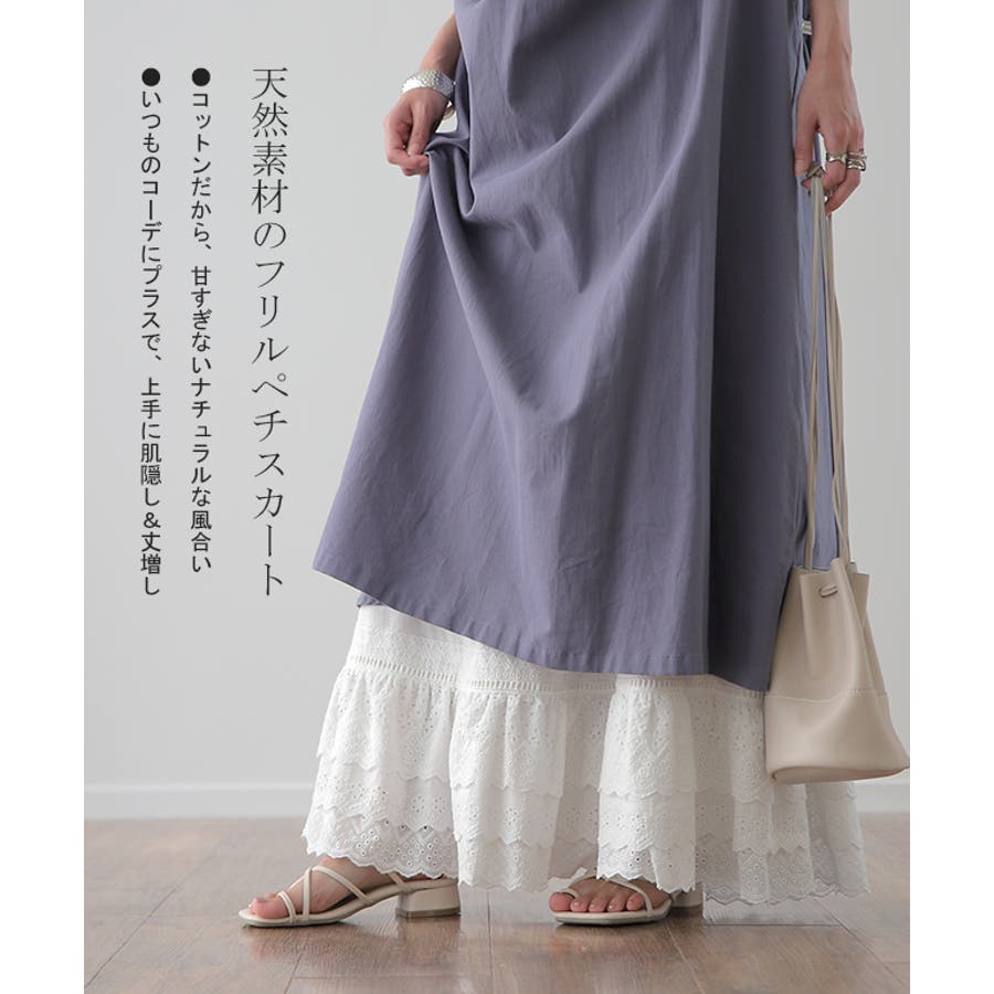 ペチコート ロング レディース スカート 綿 ぺチ レース フリル レイヤード