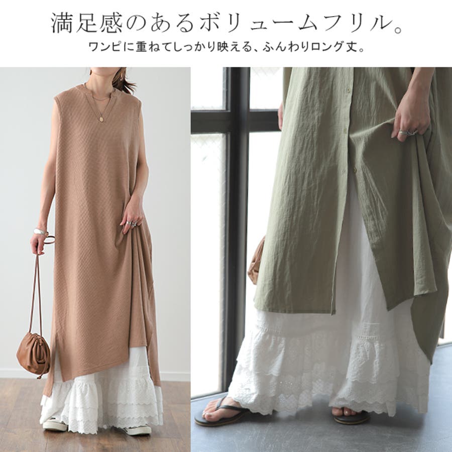 アンダースカート マキシ丈 裾フリル 裾スカート 裾レース 裾レーススカート 裾スカート フリルスカート レーススカート ペチコートスカート ぺチパンツ レイヤードパンツ インナースカート インナーパンツ 重ねるスカート リラックス イージーパンツ イージー リラックスパンツ リラックスボトム リラックス フレアスカート フレア レーススカート 綿 綿100% コットン100% コットン100 コットンフリル コットンレース 花柄レース 花柄フリル 動きやすい プラスサイズ 肌隠し 日よけ 日除け 日焼け対策 着痩せ 着回し ゆったり ゆったりサイズ すっきり カジュアル おうち時間 お家時間 ストレスフリー ロング丈 長い 長め ウエストゴム ゴムウエスト ゴムウェスト ウェストゴム ゴム 大きめ 大きい 部屋着 パジャマ ルームウェア ルームウエア ワンマイルウェア レディースファッション 無地 ラクチン 楽 らくちん 楽ちん 楽 動きやすい 体型カバー プラスサイズ 着痩せ 華奢見え ゆったりサイズ ゆる すっきり シンプル カジュアル ナチュラル ガーリー ベーシック テレワーク リモートワーク リモート オンライン飲み会 プレゼント ギフト 贈り物 大人 大人カジュアル オトナ 女性 綺麗 きれい キレイ キレイめ 高見え 上質 上品 ブラック 黒色 黒 ホワイト 白色 白 フリーサイズ フリー S M L LL 2L XL 3L XXL LLL 20代 30代 40代 50代 おしゃれ 春夏 秋冬 秋 冬 春 夏 お洒落 オシャレ かわいい 可愛い カワイイ HUGU ハグユー はぐゆー