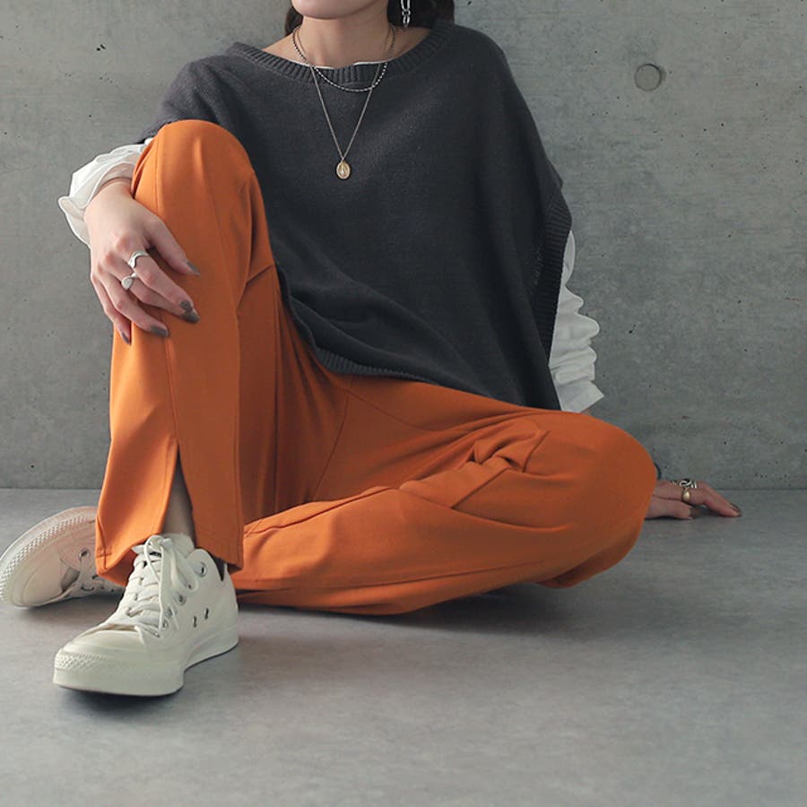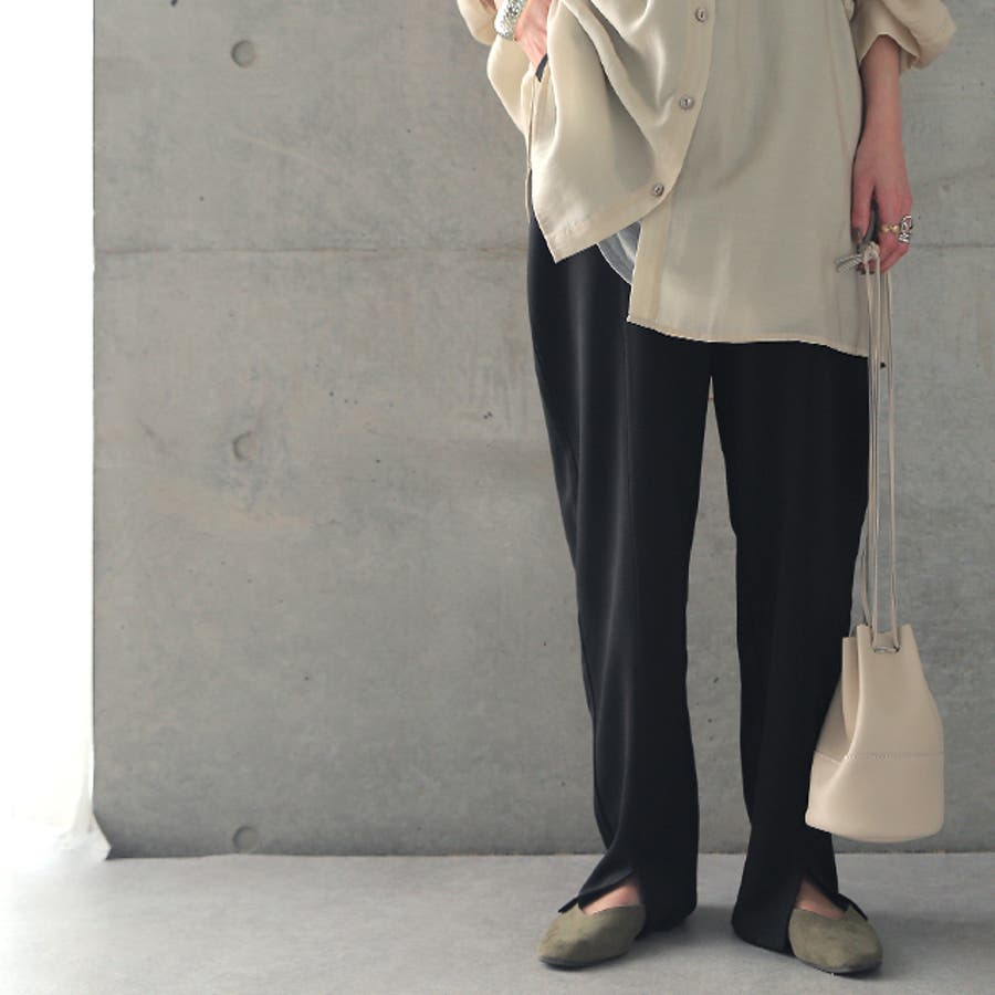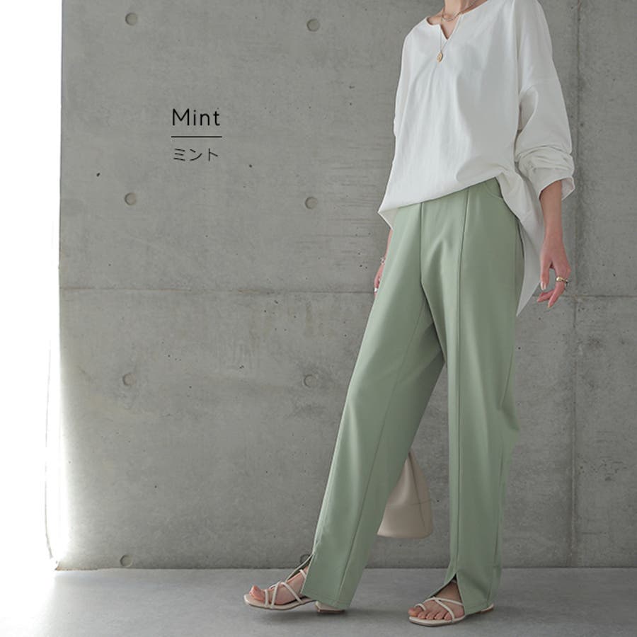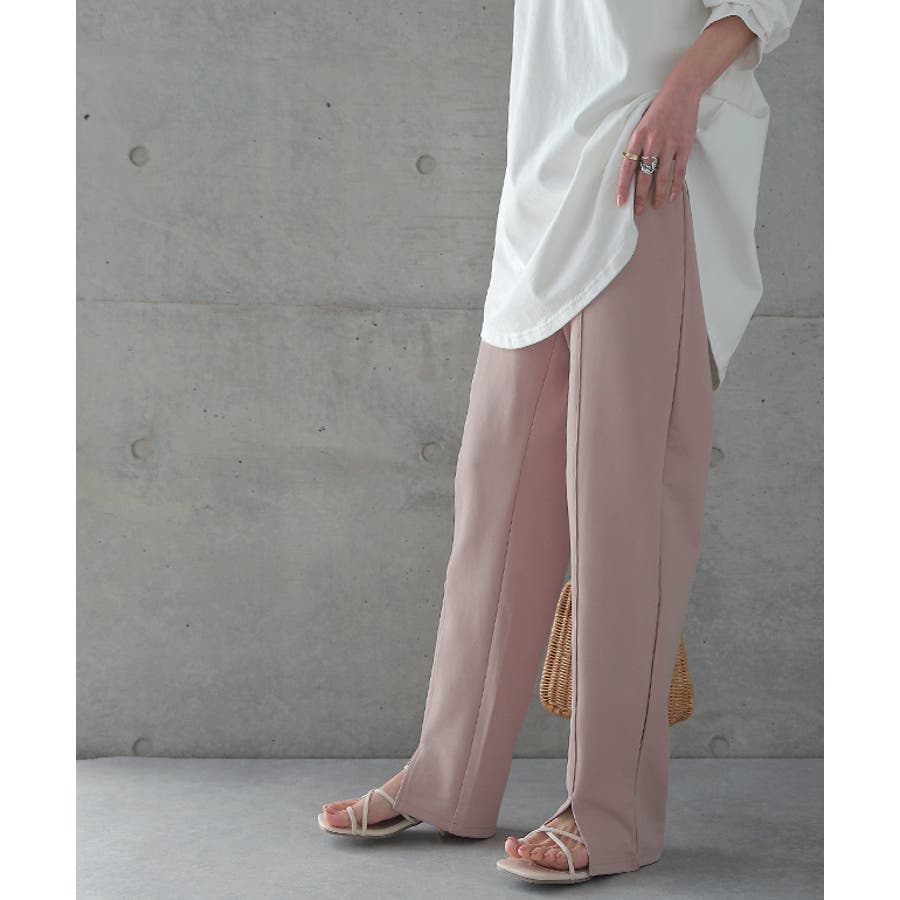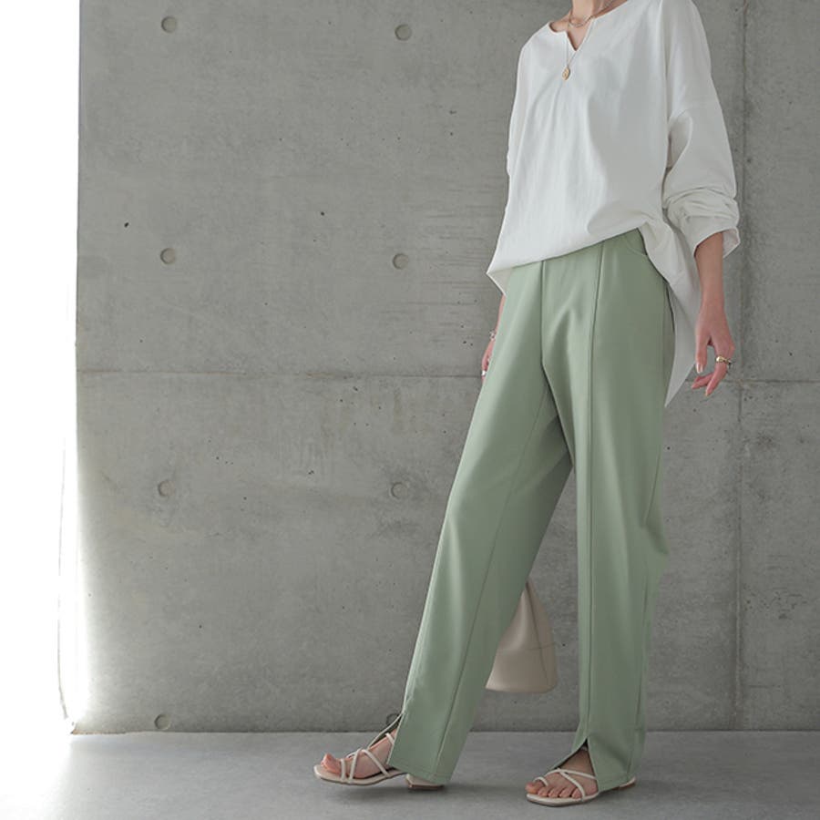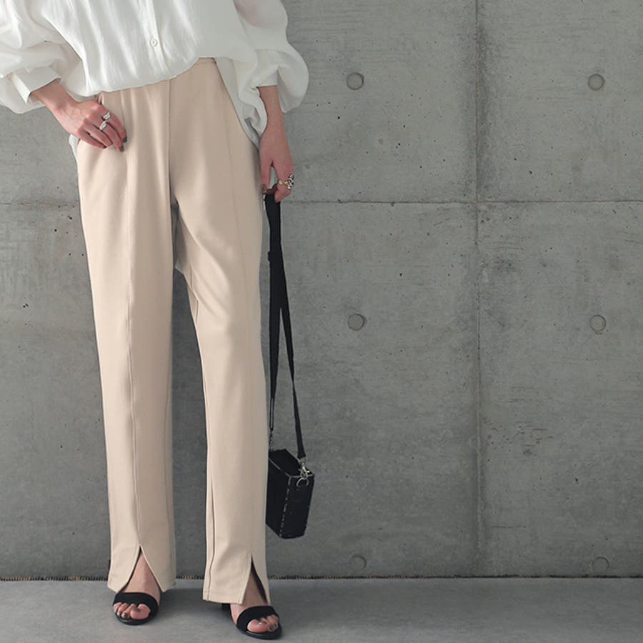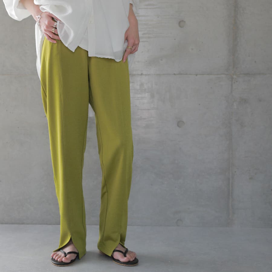シンプルながら、裾前スリットがアクセントになったイージーパンツ。