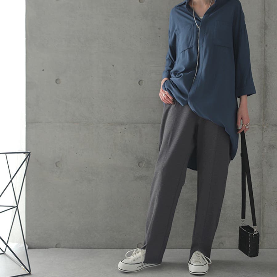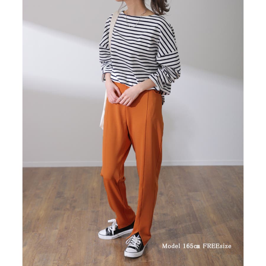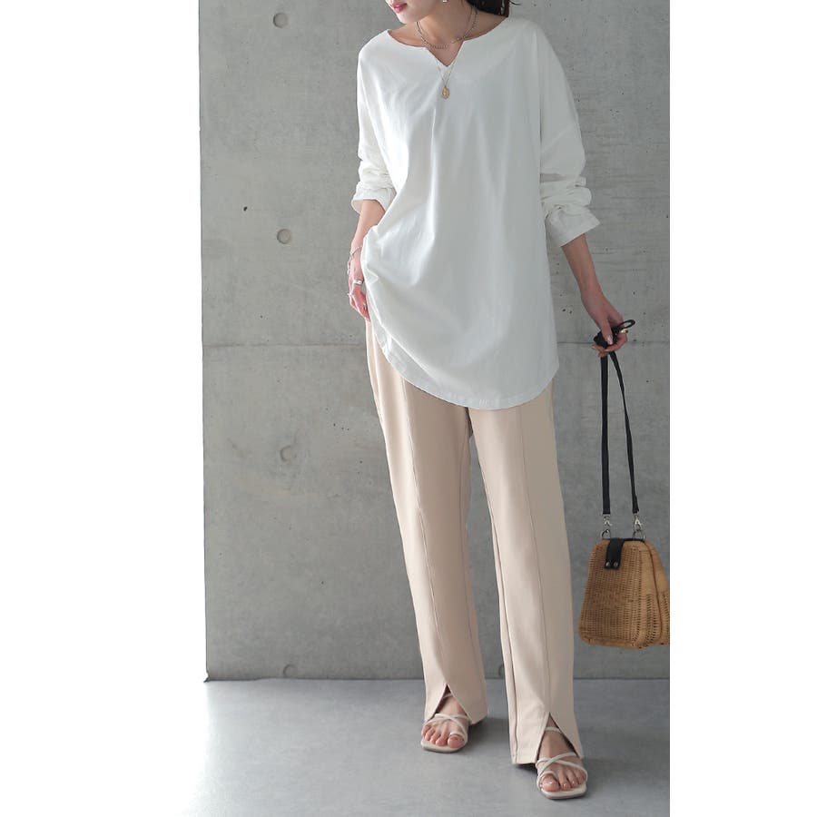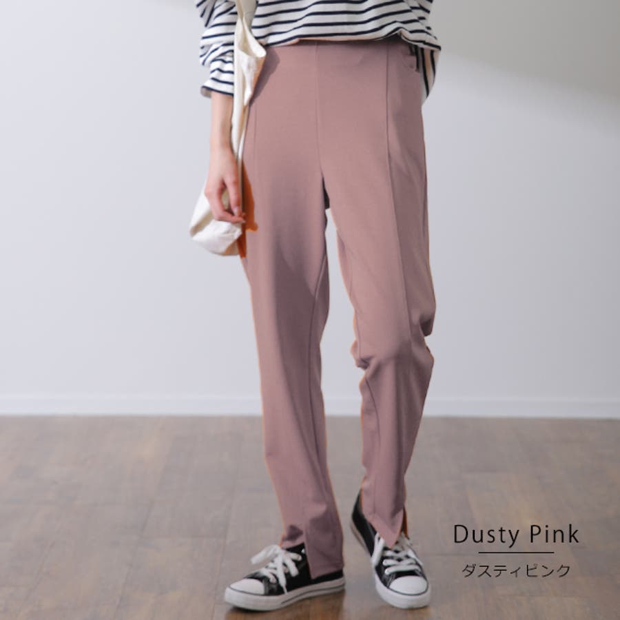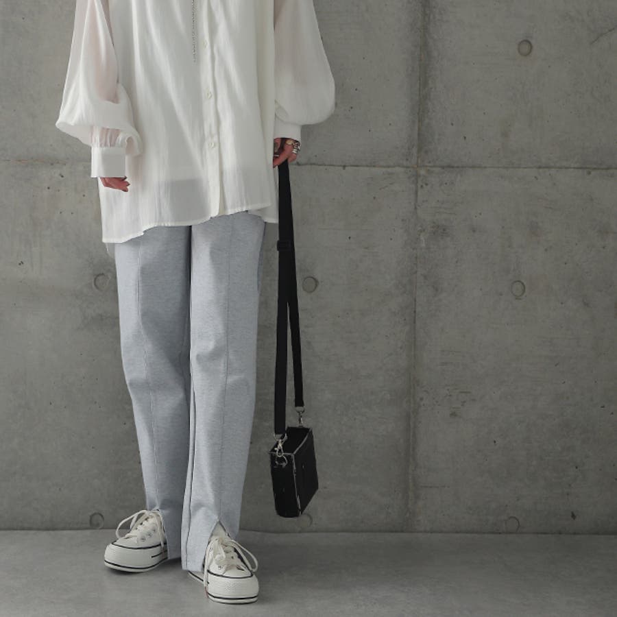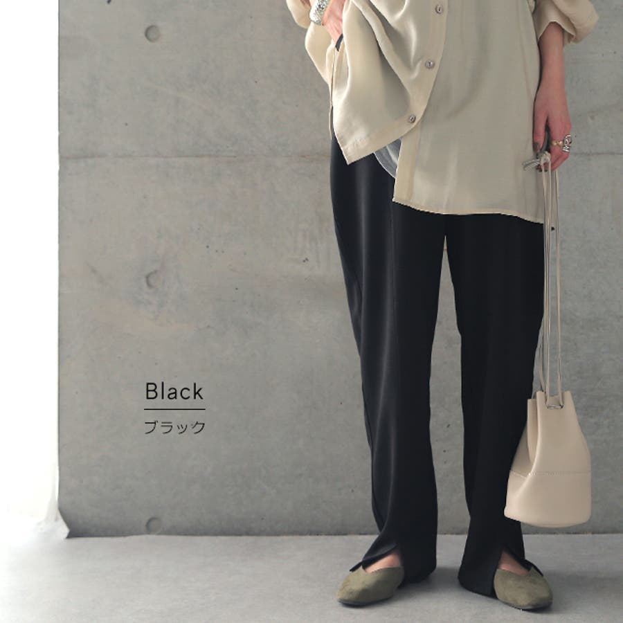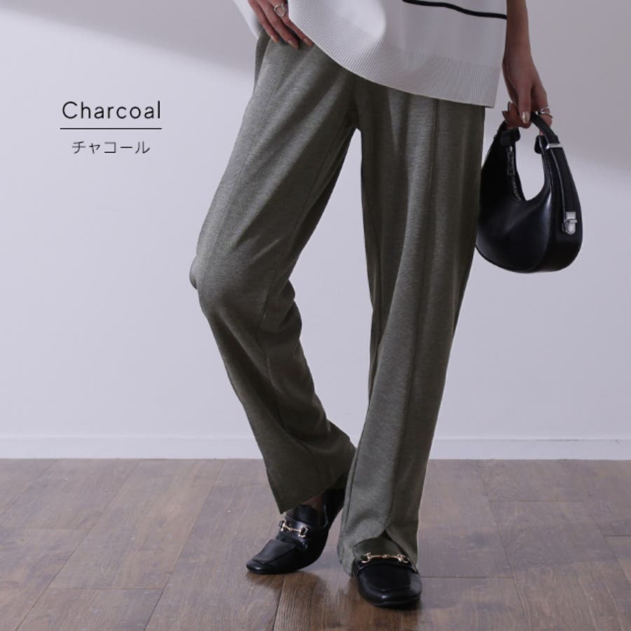 シンプルながら、裾前スリットがアクセントになったイージーパンツ。