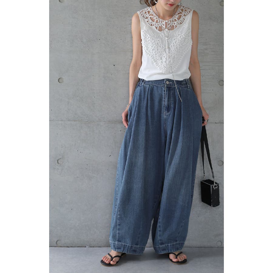 ラフを楽しむバルーンシルエットワイドデニムパンツ。