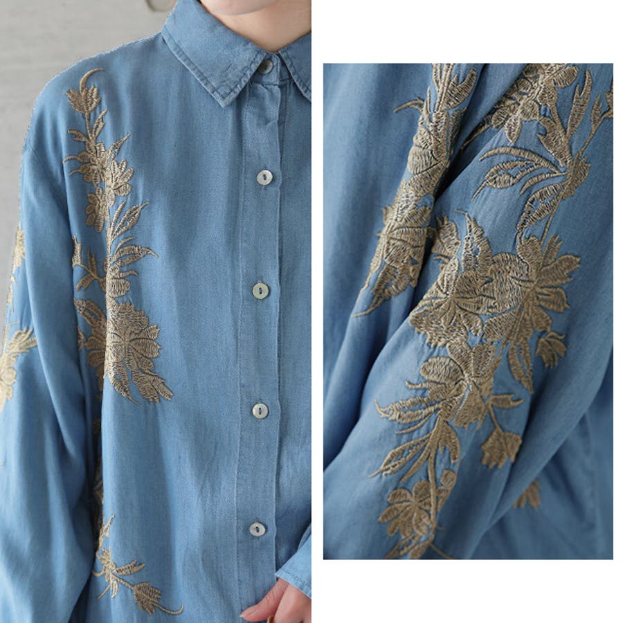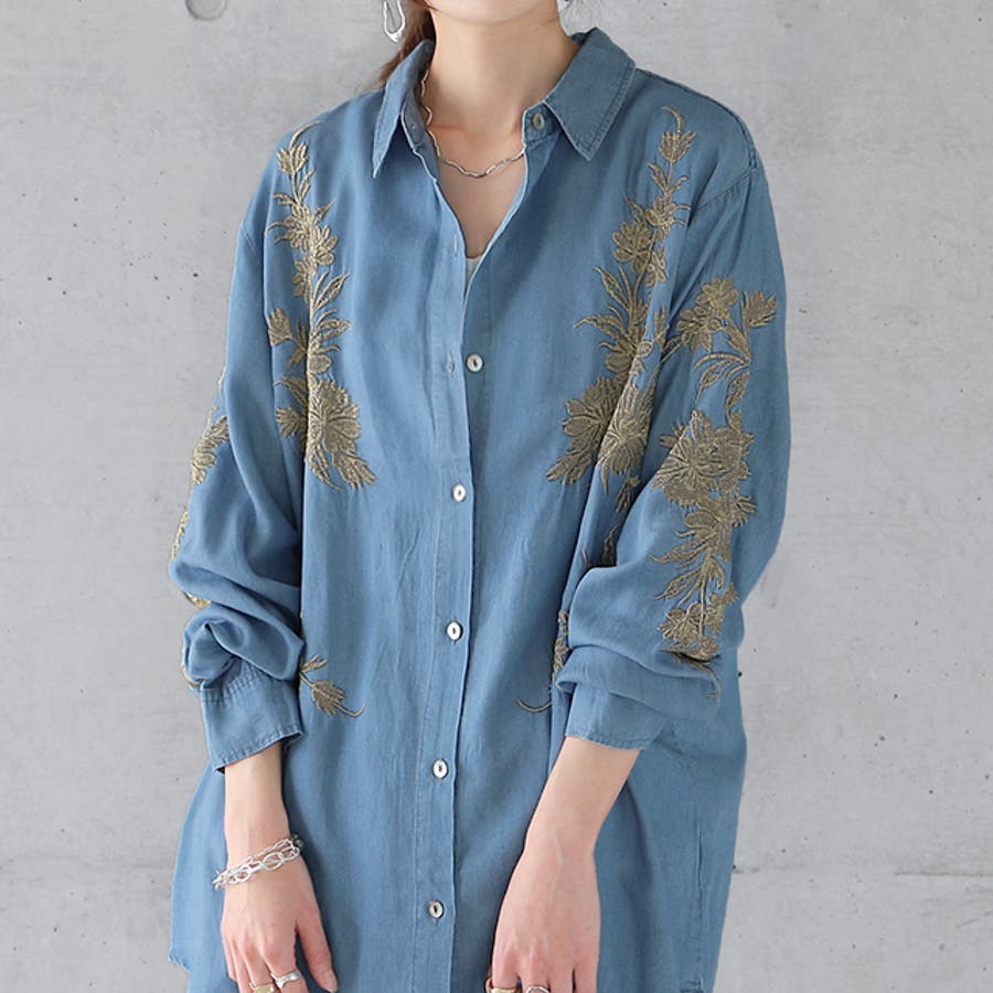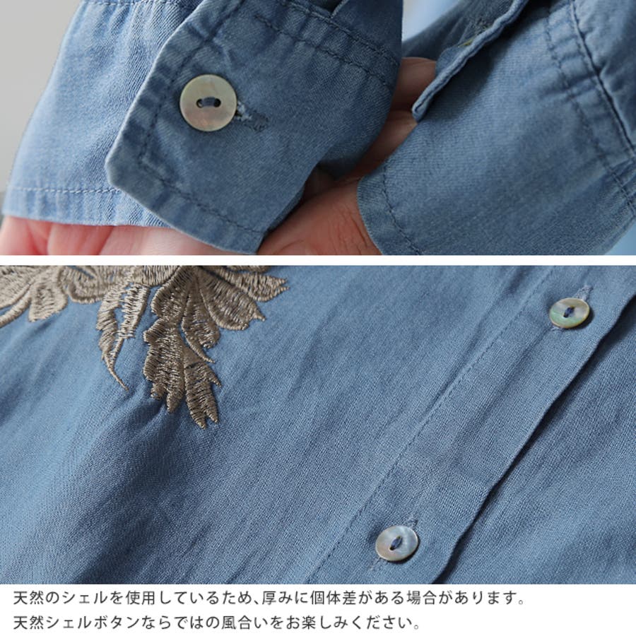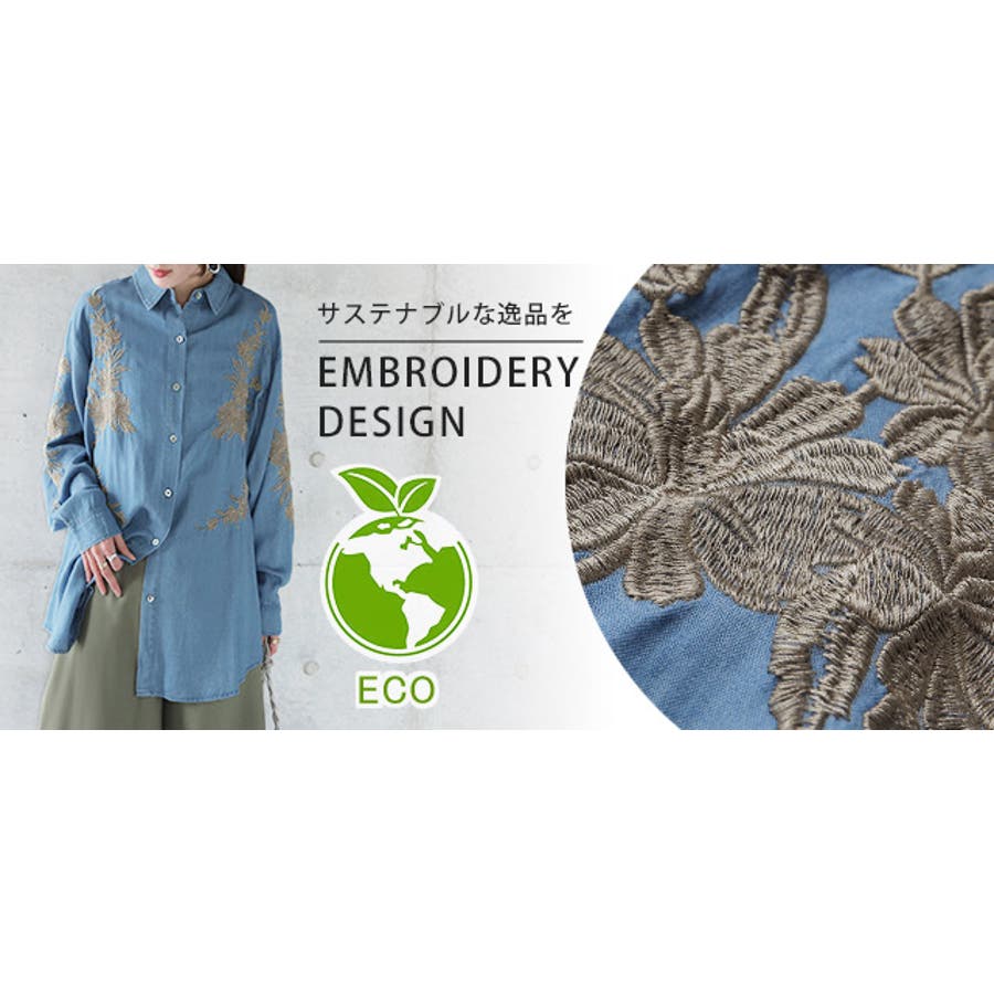 シャツ レディース サステナブル デニムシャツ デニム風 デニム トップス 刺