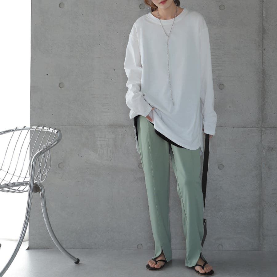 シンプルなデザインながら裾のスリットデザインが抜け感をプラス。
