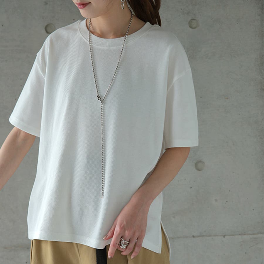 トップス レディース リブ カットソー Tシャツ 半袖 スリット レイヤード