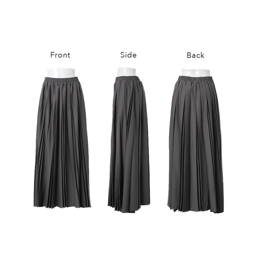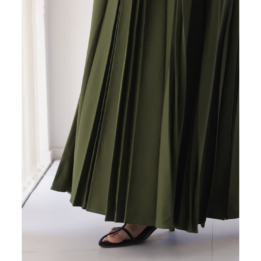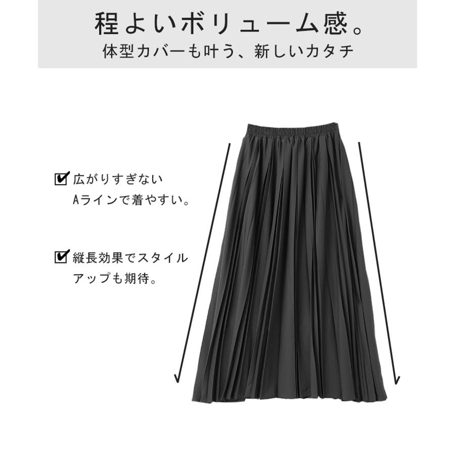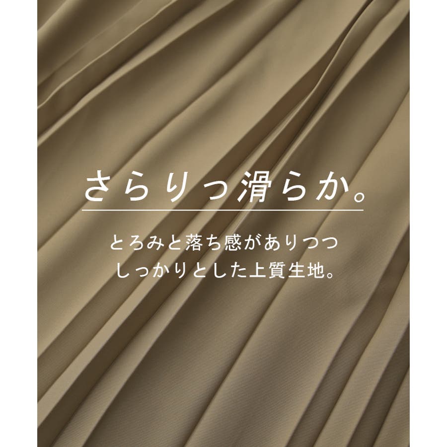 広がり過ぎないシルエットと立体感のある太めのプリーツ効果ですっきり体型カバー。