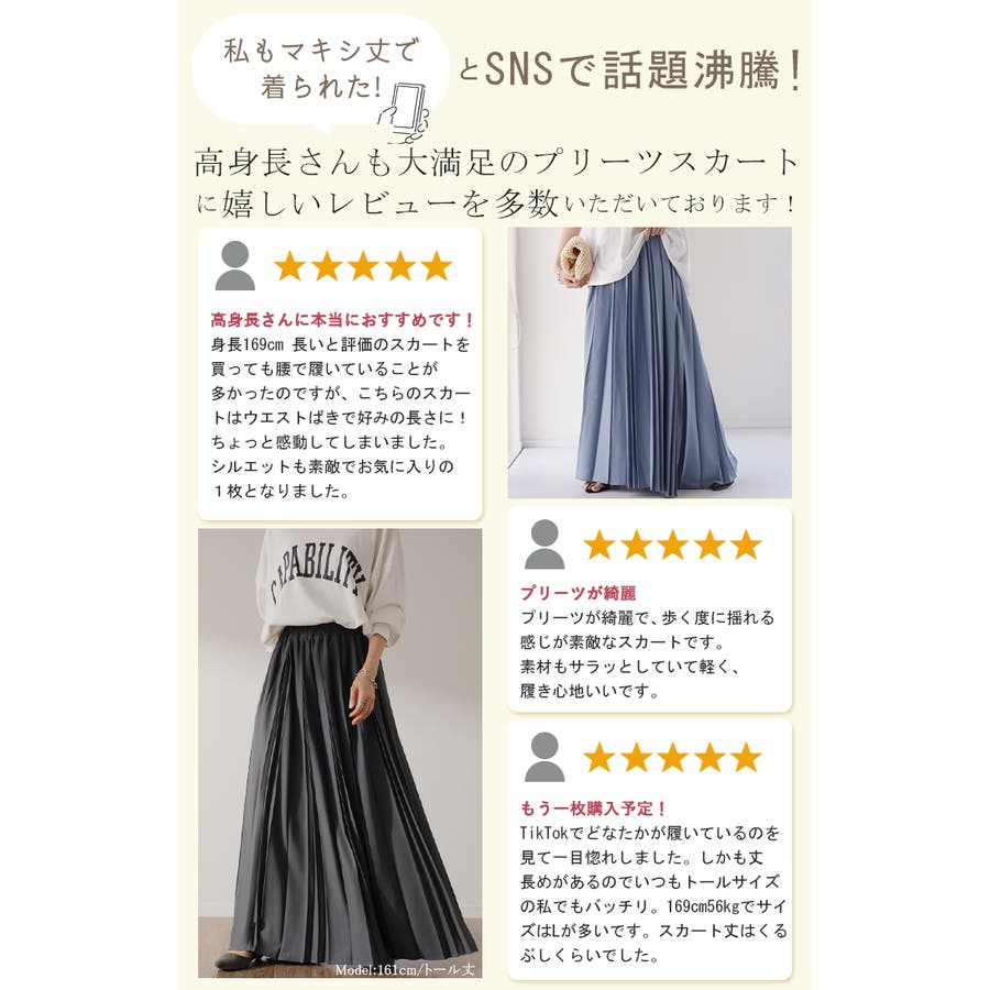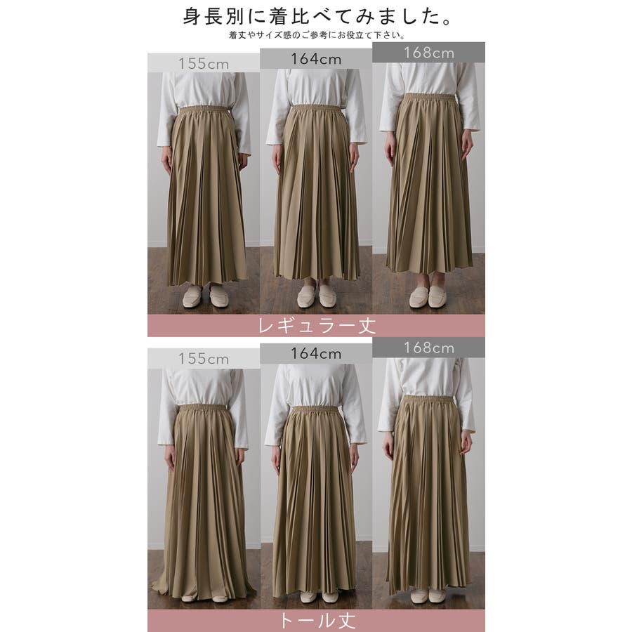 ちょっと光沢のある生地で思った感じと違いましたが、丁寧にスカートのみで箱に入って配送されて来ました。さん (40代 / 女性 / 身長165~170cm )購入アイテム:カラー ディープグレー(トール丈)いつものボトムスサイズ:XL以上サイズ感:ぴったり - ステキ