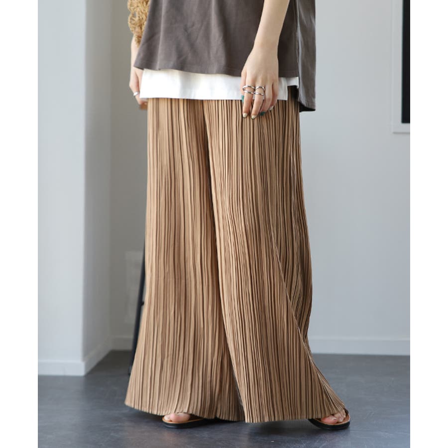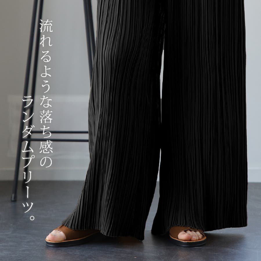ランダムに施されたプリーツが特徴のワイドパンツです。