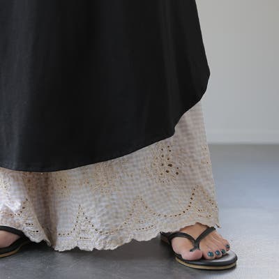 インナーとして着用すると裾から刺繍レースがのぞいて