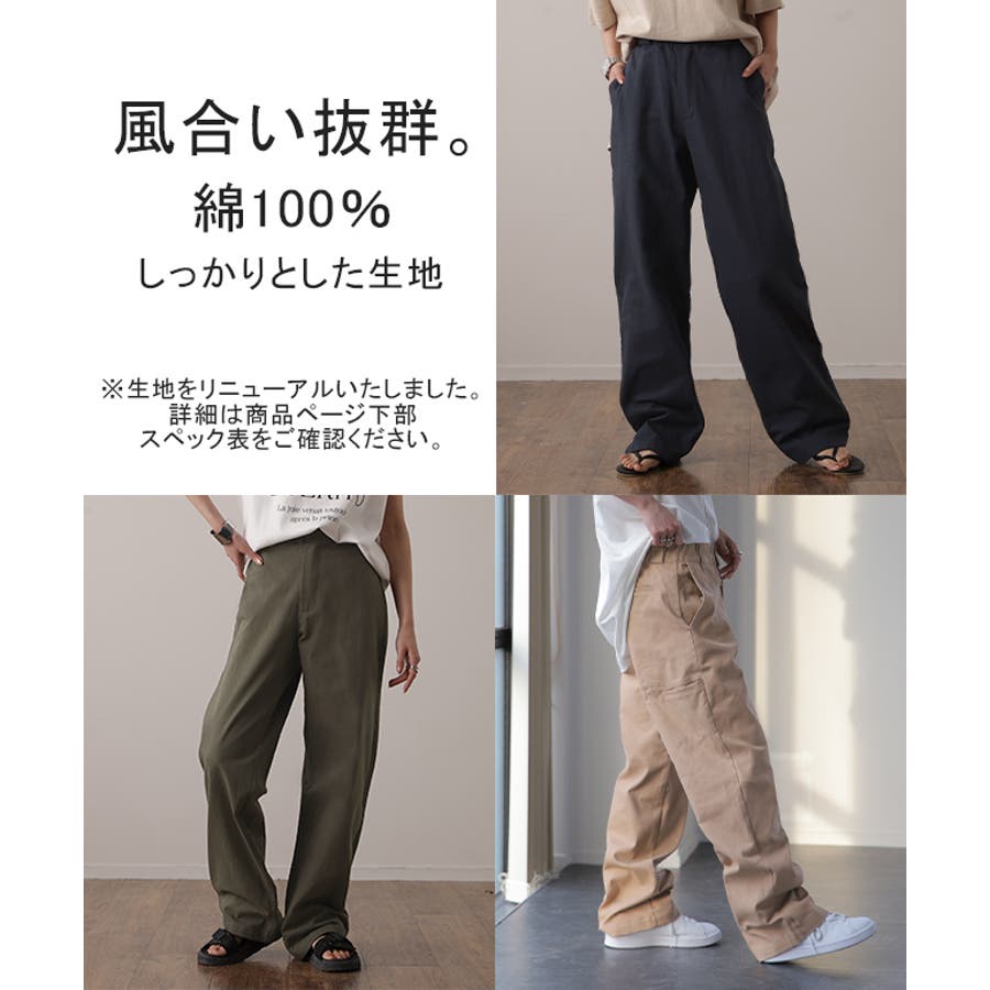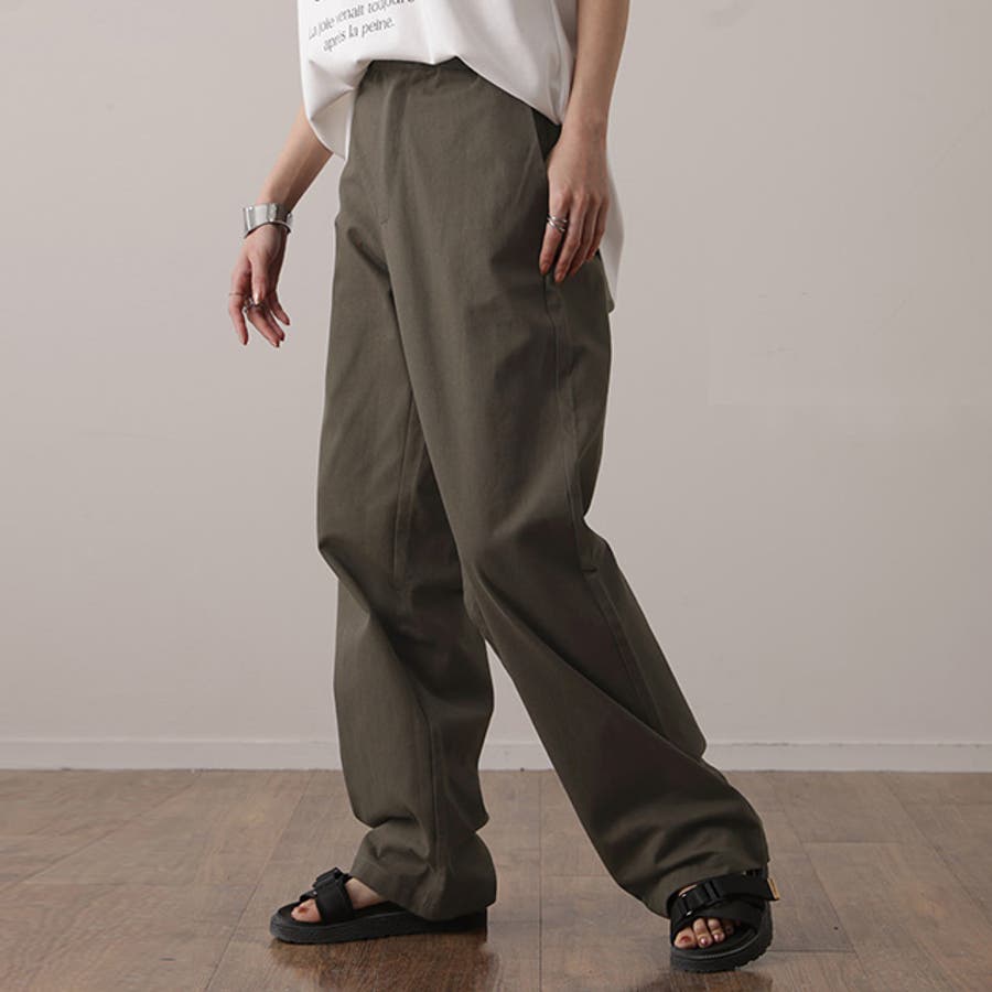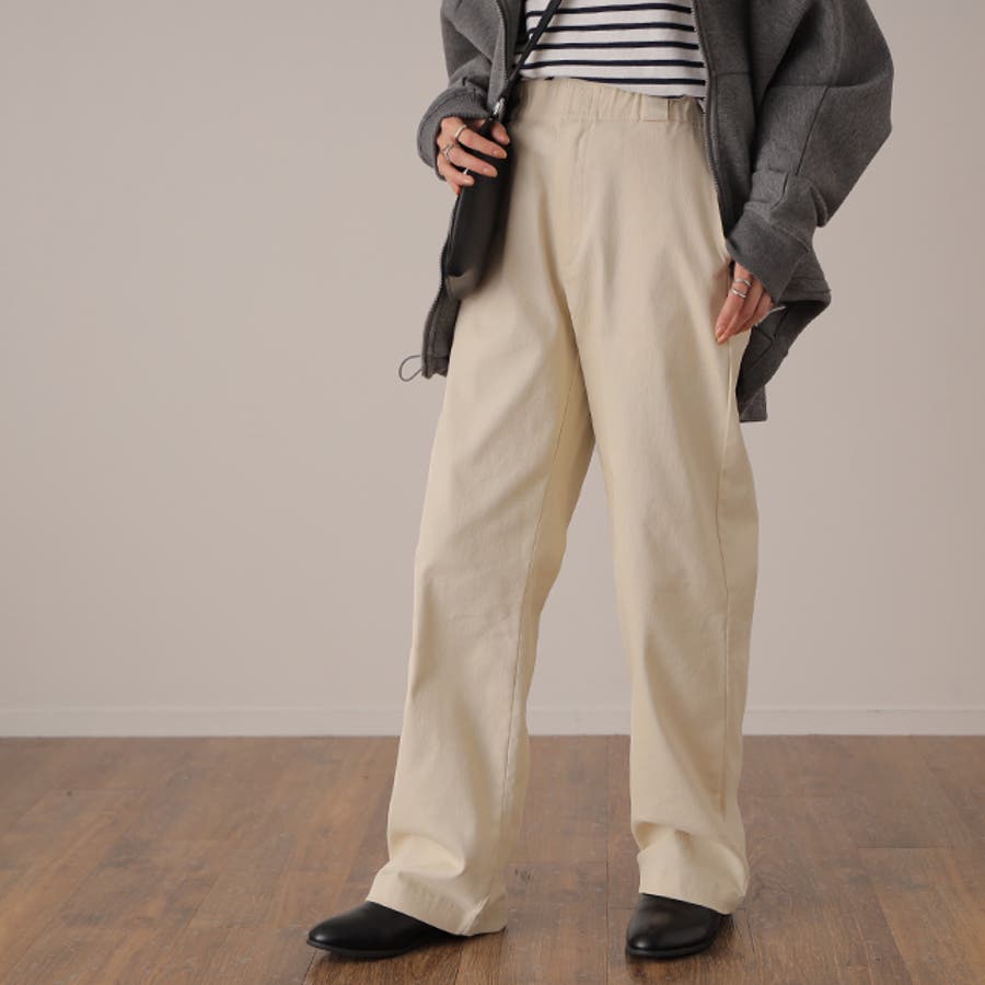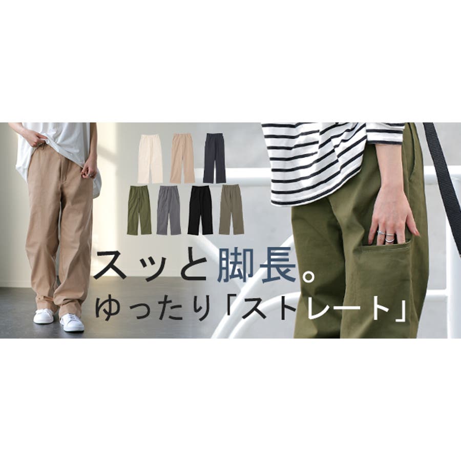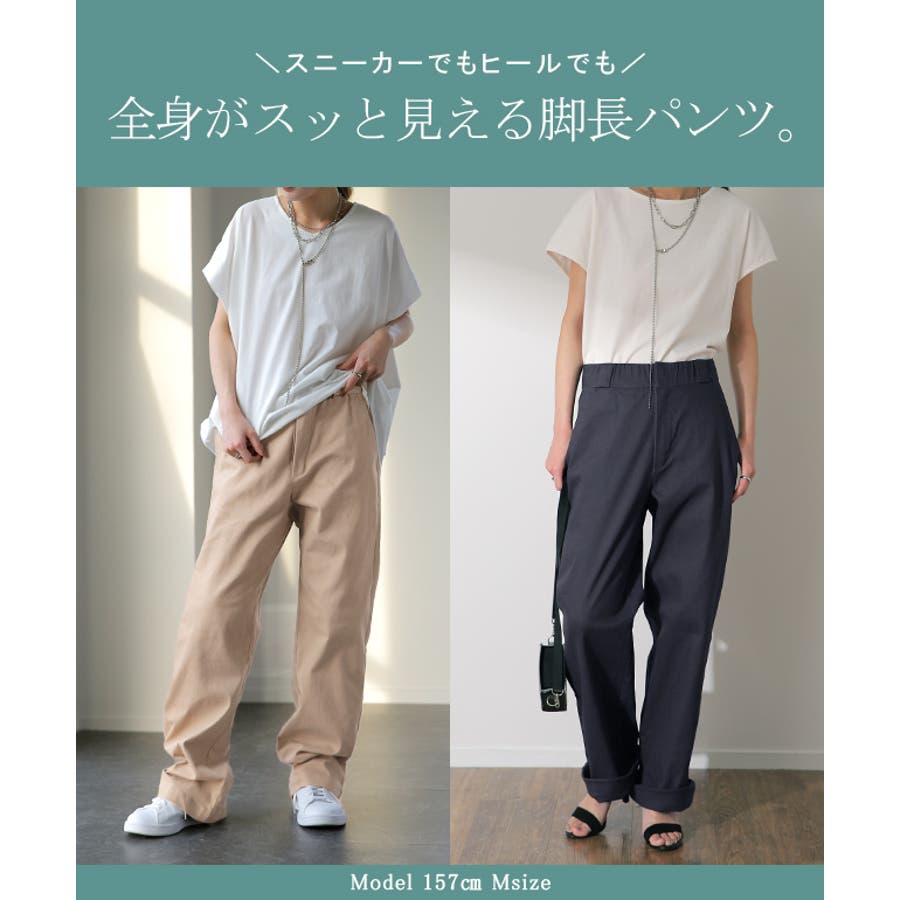 パンツ レディース 脚長 チノパン ロング ワイドパンツ ストレート ゴム ス
