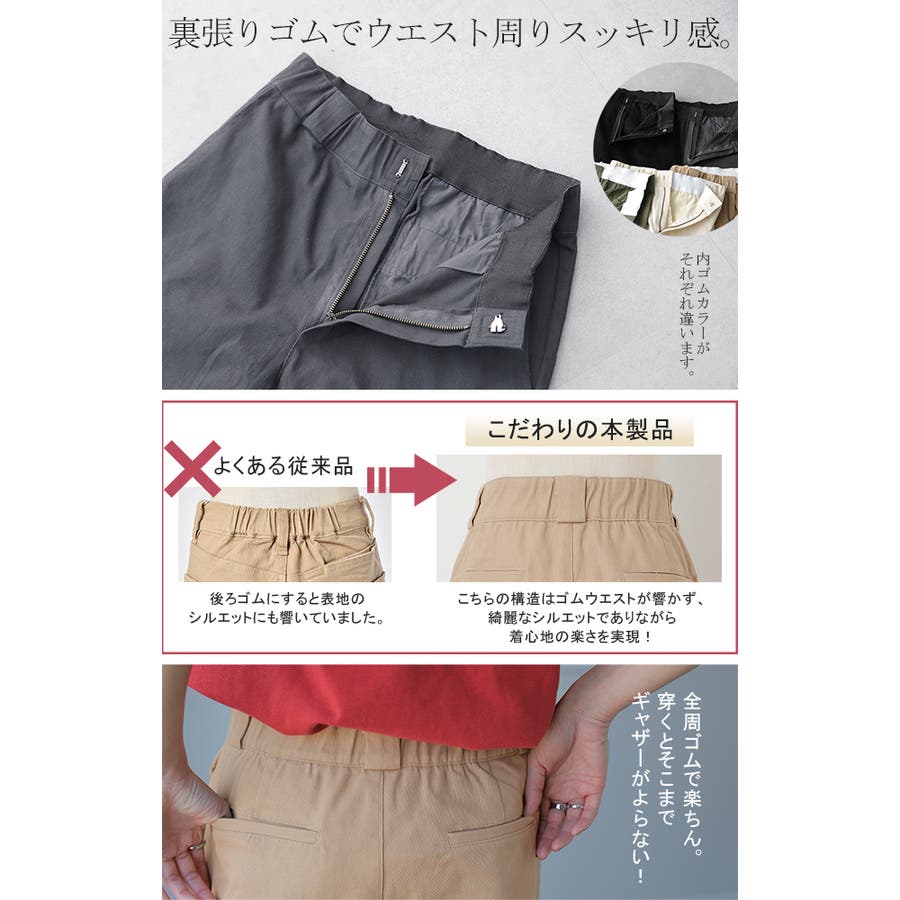 ウエストゴムなので、履きやすいし腰回りスッキリ。屈んだ時に背中が出にくい形で、とても良い。