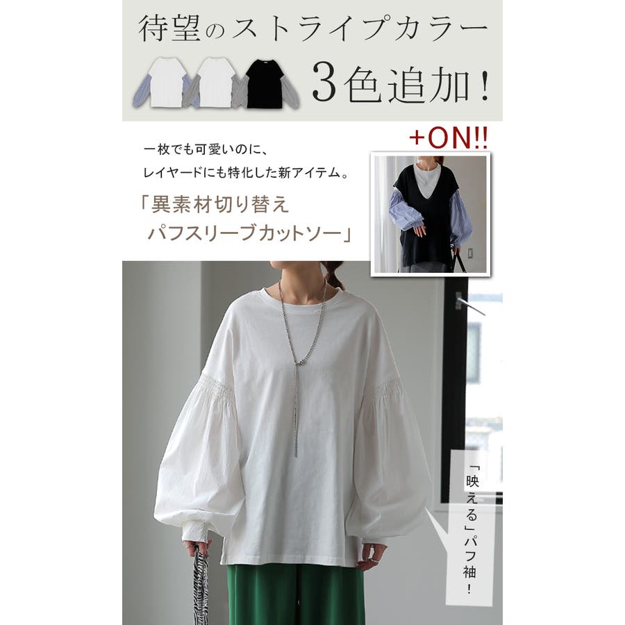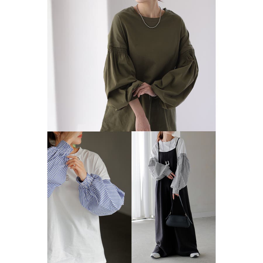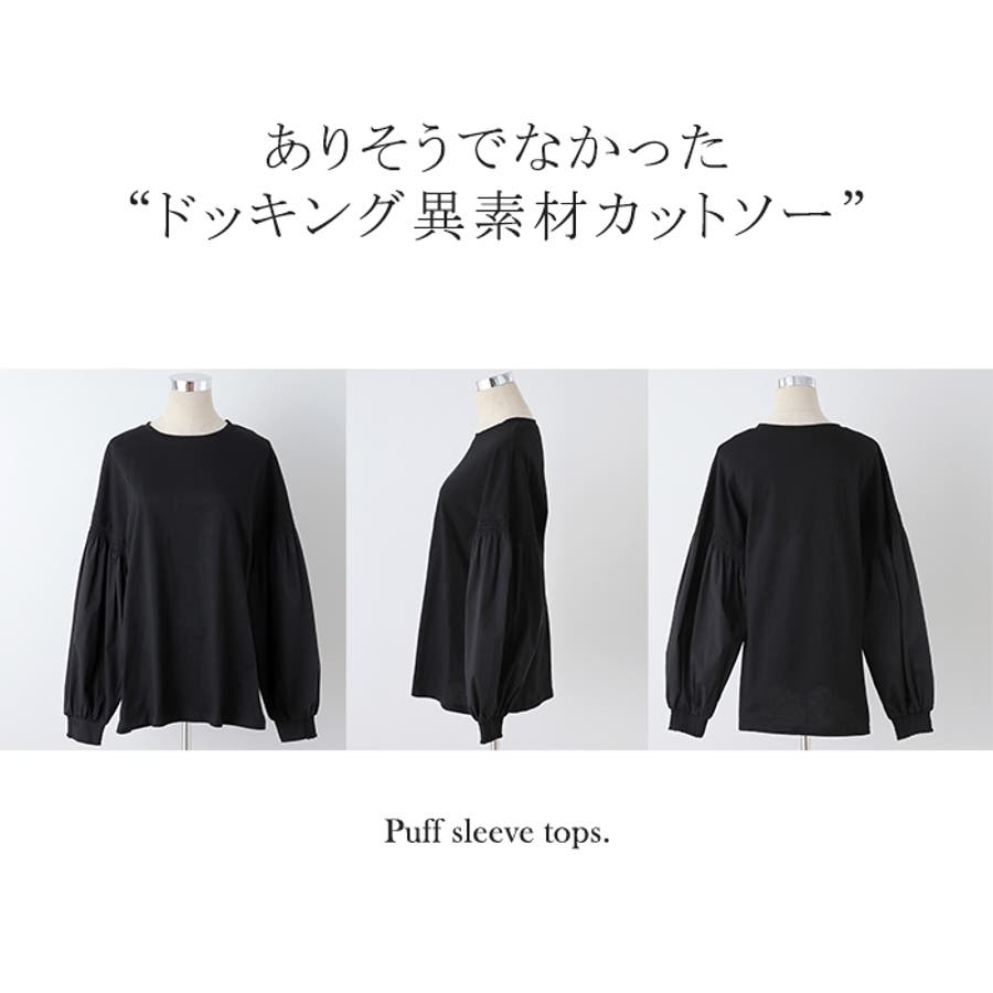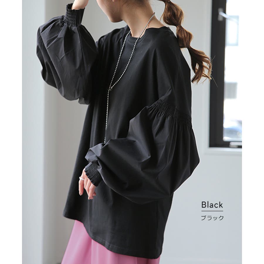 トップス レディース ブラウス カットソー ロング Tシャツ ロンT パフスリ