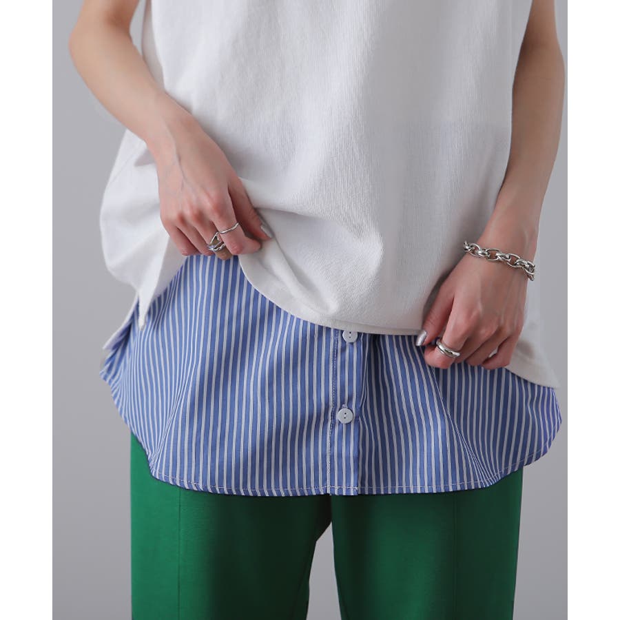 心地よい着用感のタンクトップの裾にブラウスがドッキング。