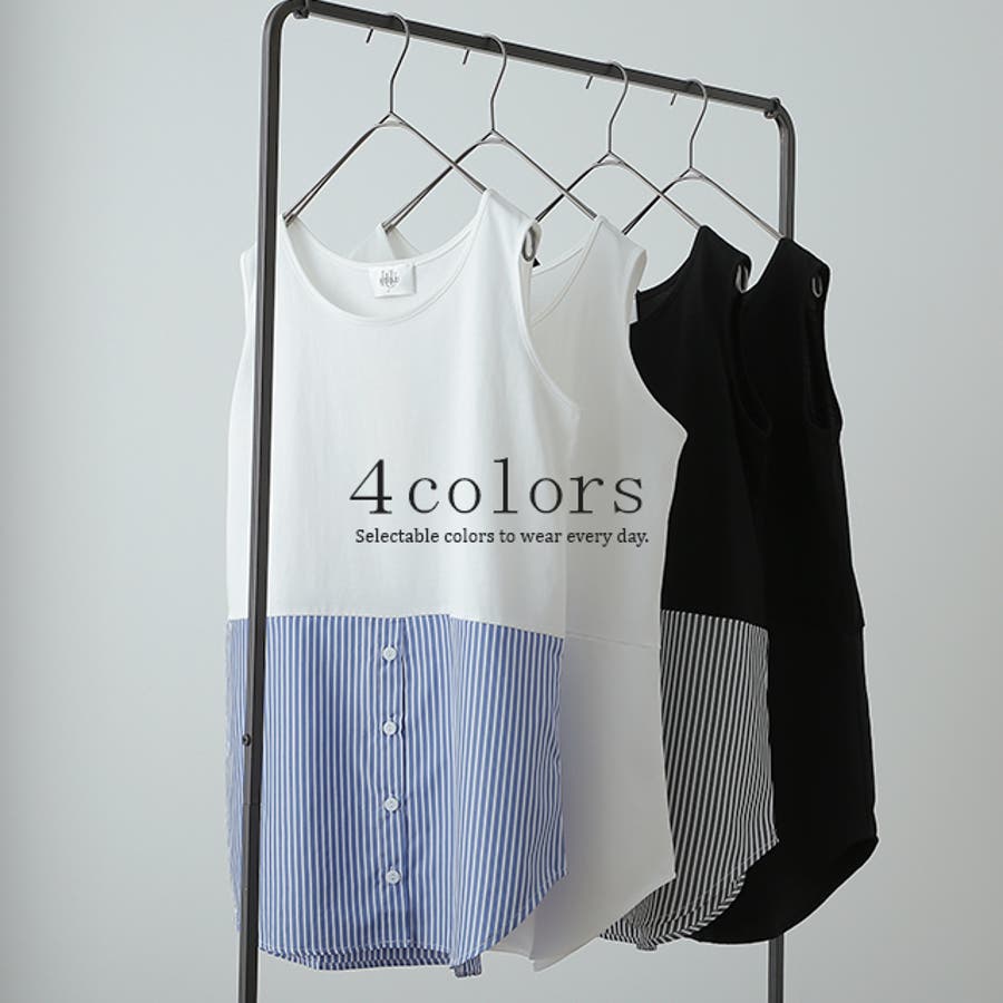 タンクトップ レディース シャツ レイヤード トップス ストライプ 付け裾 お